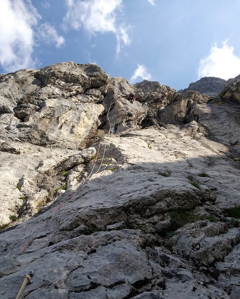 Sehr schöne und abwechslungsreiche kletterei in gutem Fels. Gut absicherbar mit Friends und Keile. Plus 23 BH stecken in der Tour.