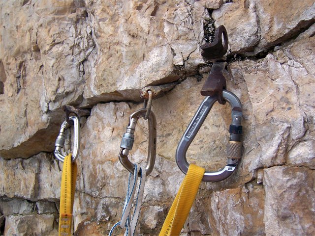 10 Expressschlingen, ev. Haken und Hammer
