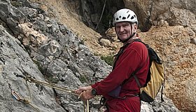 Kompl. Kletterausrüstung, Bandschlingen und Helm.