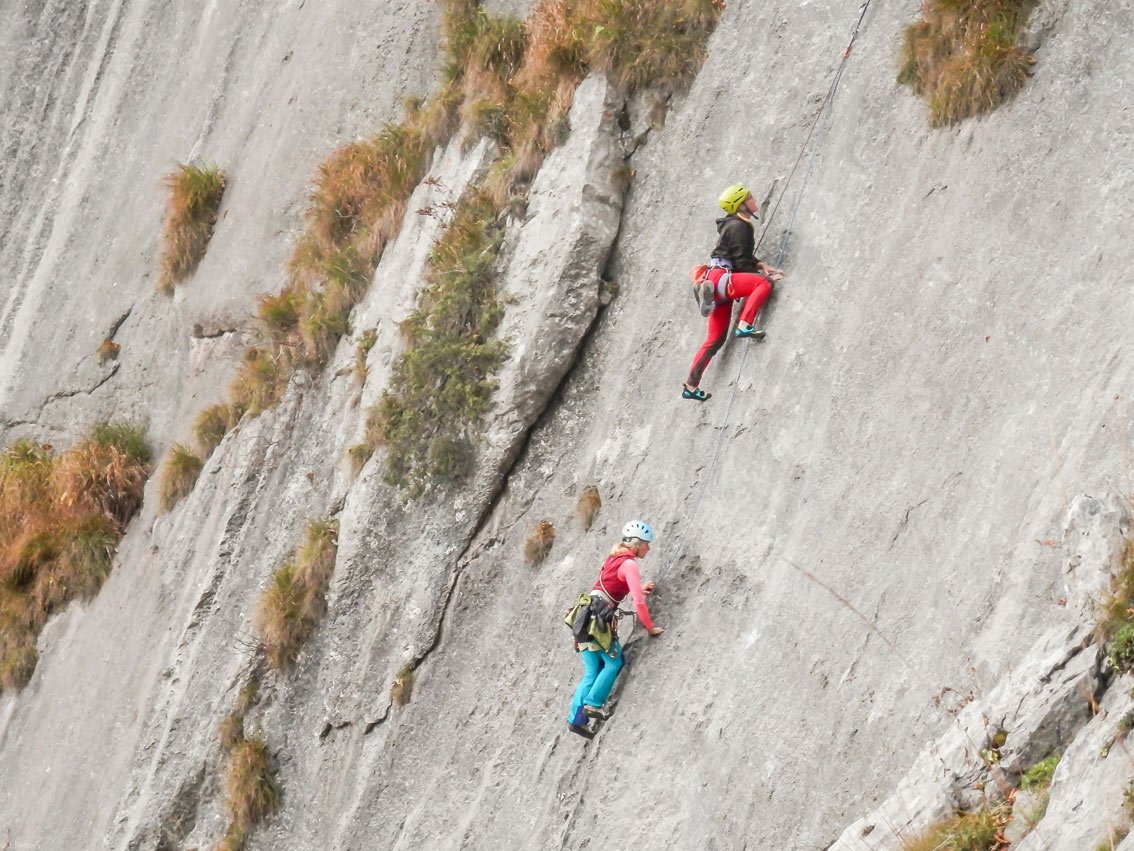 1 x 60 m Einfachseil, 11 Expressschlingen und Helm.