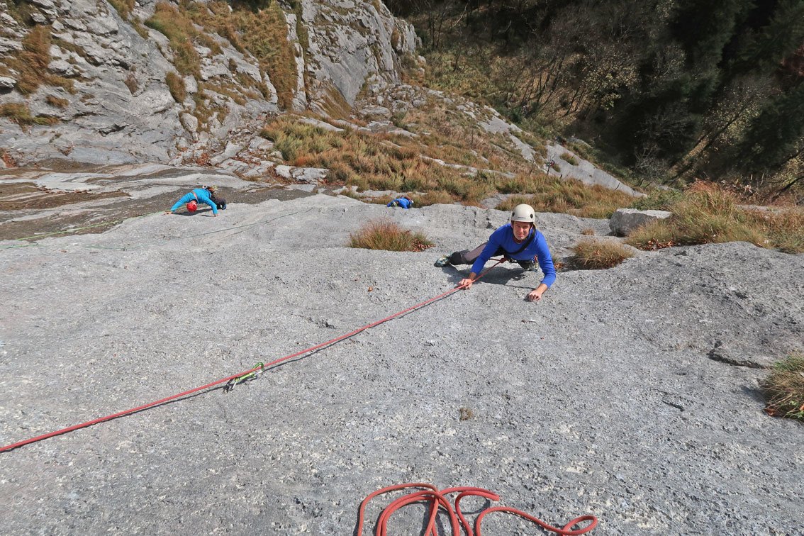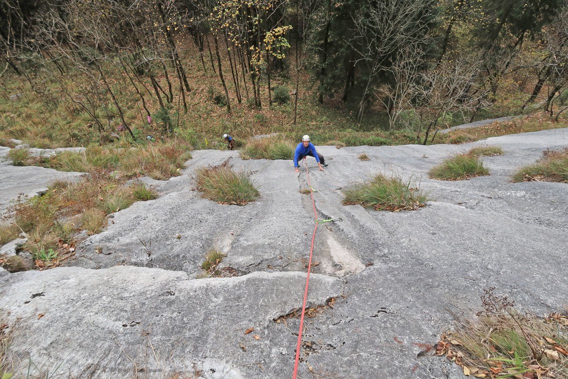Die Touren sind nach Schneeschmelze und Regen längere Zeit nass. Am besten zwei trockene Tage abwarten. Man kann die Lage bereits vom Parkplatz einschätzen. Ein vielfältiges Betätigungsfeld für einen ausgefüllten Klettertag.