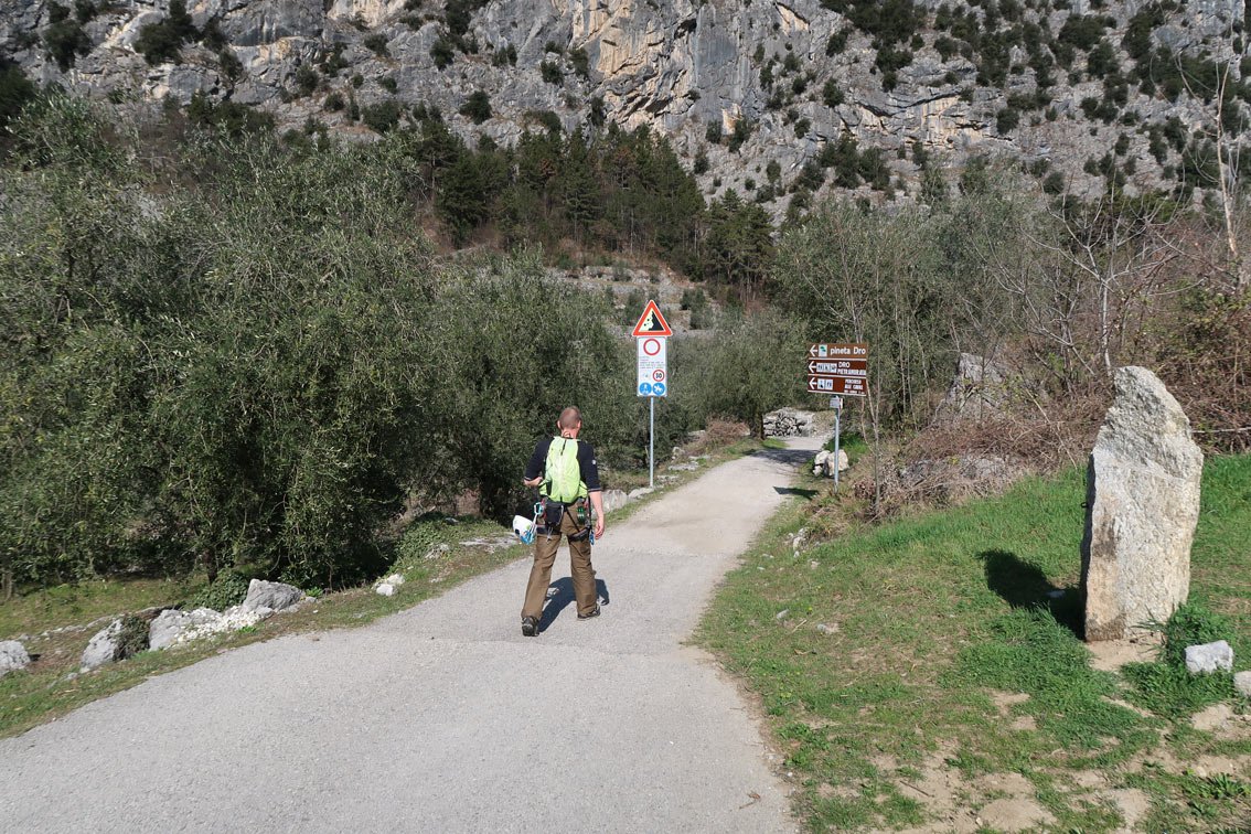 Von Arco etwa 5 km in Richtung Trento fahren. Man kommt zum Ort Dro. Im Ort befindet sich eine Sportanlage nördlich auf einem kleinen Hügel (man sieht die Flutlichtmasten). Man folgt den Wegweisern Richtung "Località Oltra" bzw. "Centro sportivo". Direkt auf dem Hügel beim Sportplatz parken.