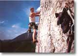Einfachseil, 14 Expreßschlingen, Helm und eine lange Bandschlinge.