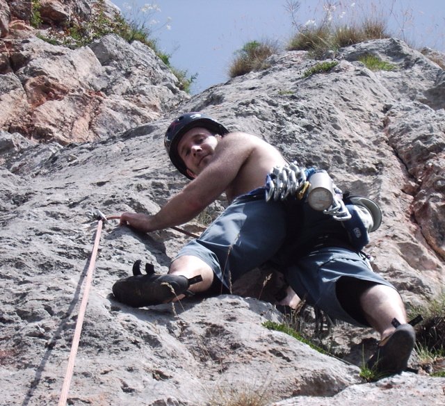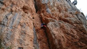 Sehr schöne und abwechslungsreiche Kletterei, die in den ersten beiden Längen durch eine sehr steile, beeindruckende rote Verschneidung führt. Es folgen ein toller grauer Pfeiler und eine Abschlusswand. Die Route wurde saniert und ist jetzt sehr gut mit NH und BH gesichert, wobei auch die Normalhaken von sehr guter Qualität sind.