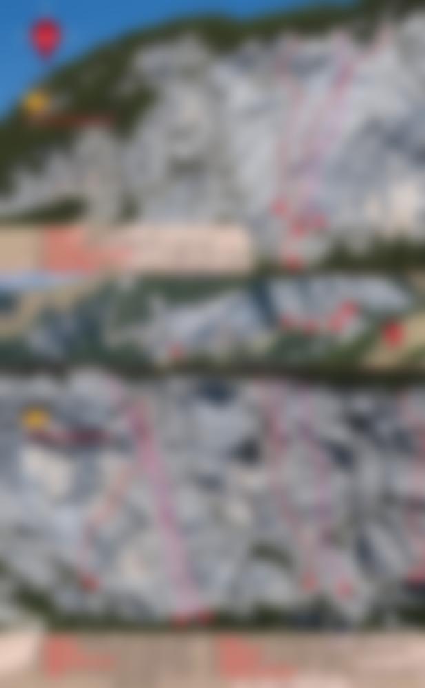 Man folgt dem Wanderweg hinauf zur Dalfazalm (1639 m). Genau auf Höhe der Almhütte nordwestlich auf Pfadspuren den Hang entlang, man kommt zu zwei kleinen Hütten im sog. Eiskeller. Hinter den Hütten beginnt ein Latschenpfad, dem man bis unter die Felswand folgt (linker Wandteil, Route EU-Stress etc.). Dann rechts der Felswand entlang bis man unter dem mittleren Wandteil steht. Man klettert dann links auf einen Latschenvorbau zum Einstieg (Standbohrhaken).
