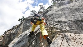 Die Route ist sehr gut mit Bohrhaken, Normalhaken und SUs gesichert.