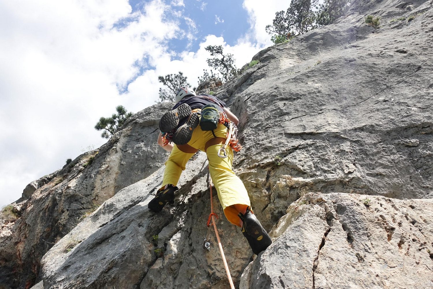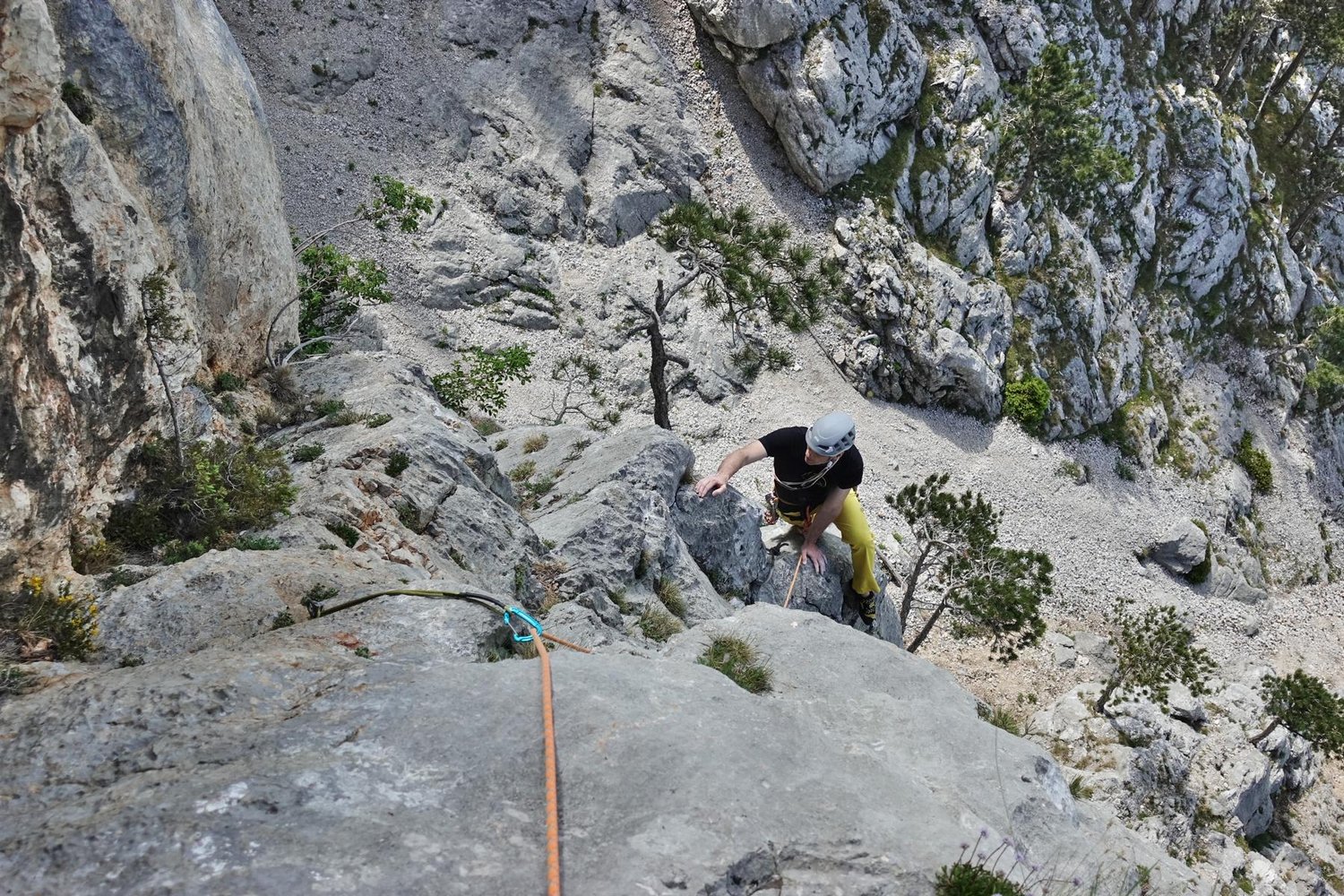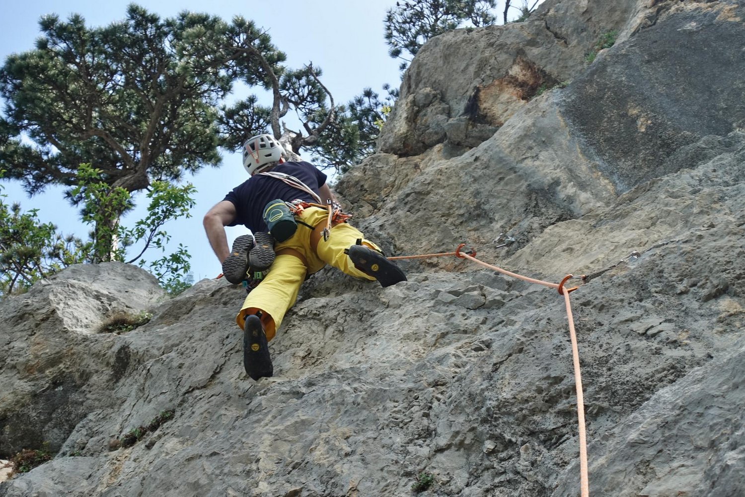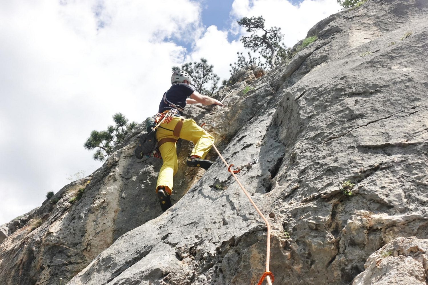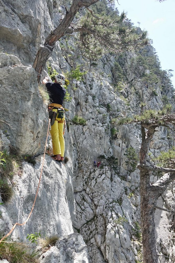 Die Route ist sehr gut mit Bohrhaken, Normalhaken und SUs gesichert.