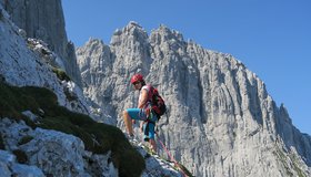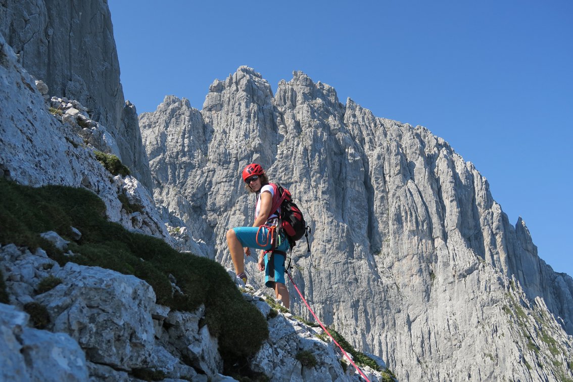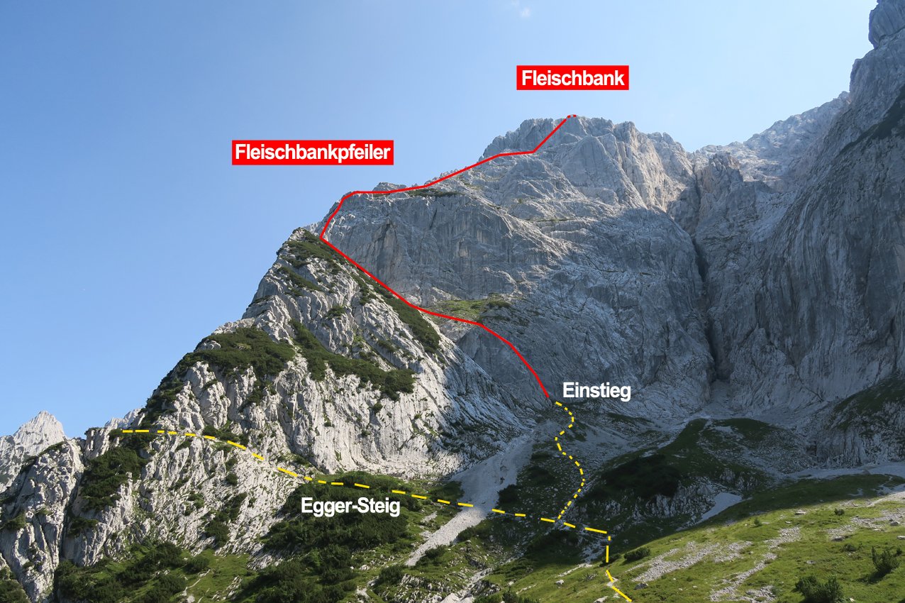 Der Nordgrat ist ein klassischer und sehr beliebter Anstieg auf die Fleischbank. Bis auf einige Seillängen im 3ten Grad (im unteren Teil und oberen Teil der Route) meist leichteres Gelände und auch sehr viel Gehgelände. Am Schluß wieder sehr schöne Kletterei auf dem Grat bis direkt zum Gipfelkreuz der Fleischbank. Schöner Ausblick auf die berühmten Felsabbrüche von Predigtstuhl und Totenkirchl, der Abstieg vom Ellmauer Tor auf dem Eggersteig runden dieses Kaiser-Klettererlebnis perfekt ab.