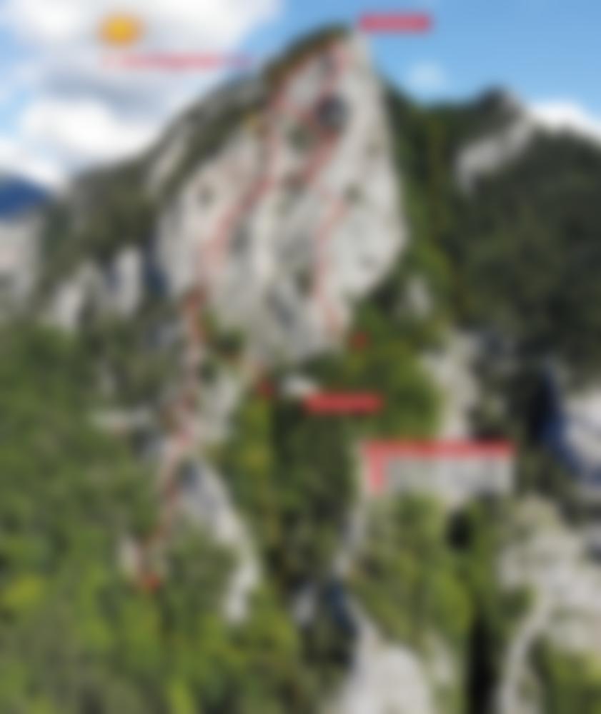 Die ersten zwei Seillängen bis zum "Oha Kamin" sollte man rasch hinter sich bringen, da man dort dem Steinschlag von oben ausgesetzt ist.
