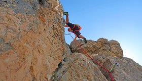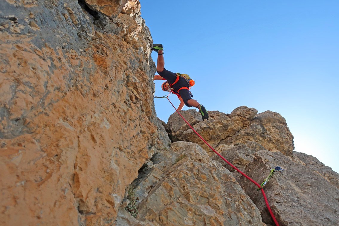 1 x 60 m Einfachseil, 8 Expressschlingen, Bandschlingen, Helm und evtl. ein Klemmkeil Grundsortiment.