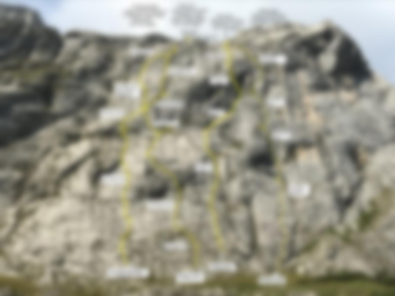 Alpine Sportkletterei mit teilweise längeren Hakenabständen. Wie bei den anderen Touren in dieser Wand Sylvi-Line etc...