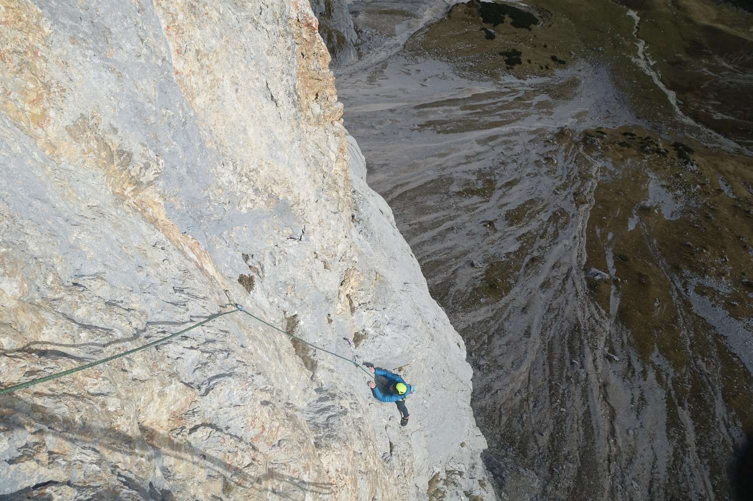 Wo der Fels einen Riss, etc. bietet wurde konsequent kein Haken gesetzt, sodass man zwar super Placements findet, aber egal bei welcher Schwierigkeit mobil ergänzen muss