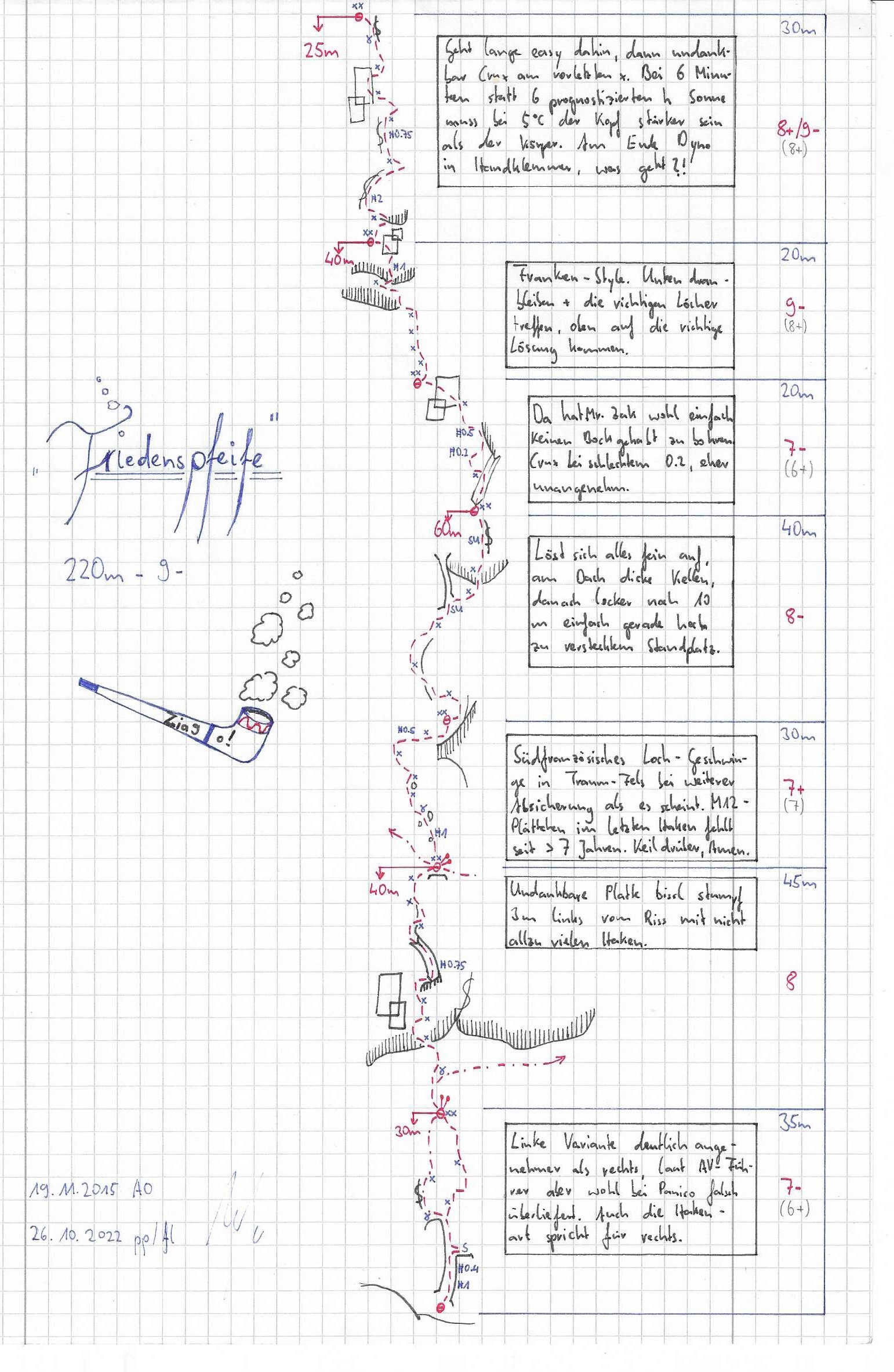 Wunderschöne, sehr anspruchsvolle und überaus abwechslungsreiche Kletterei. Delikate Platten, griffige Wandstellen und knifflige Überhänge. Ein Meisterwerk von Hangl sen. und Heinz Zak,