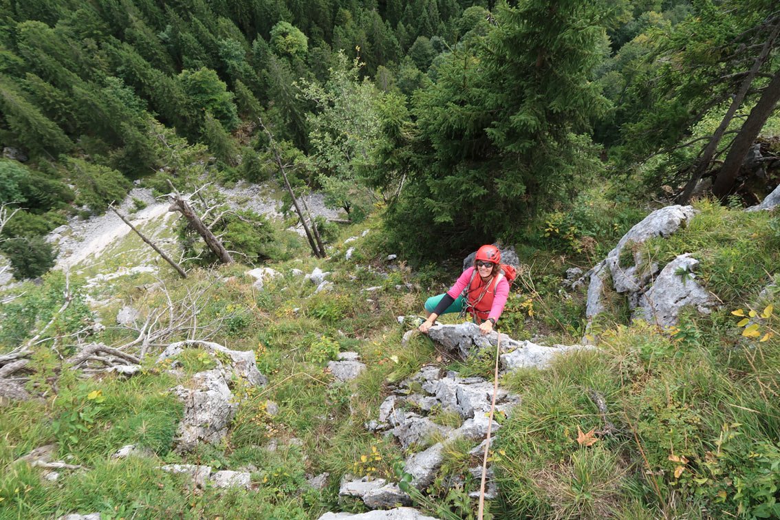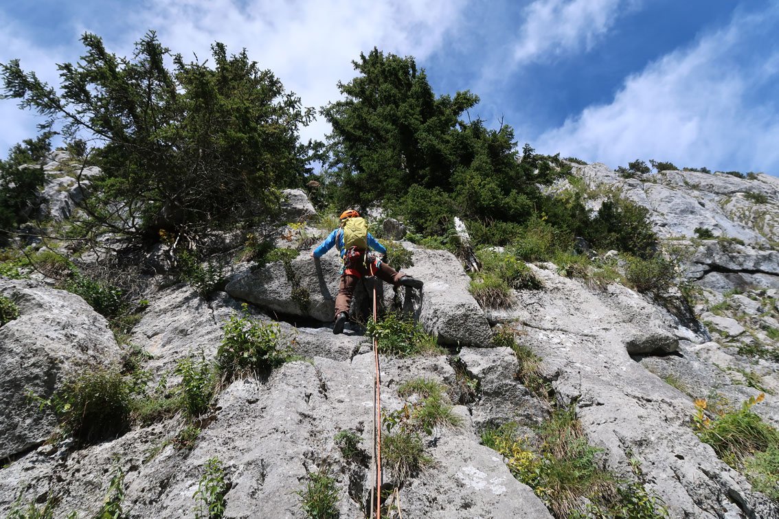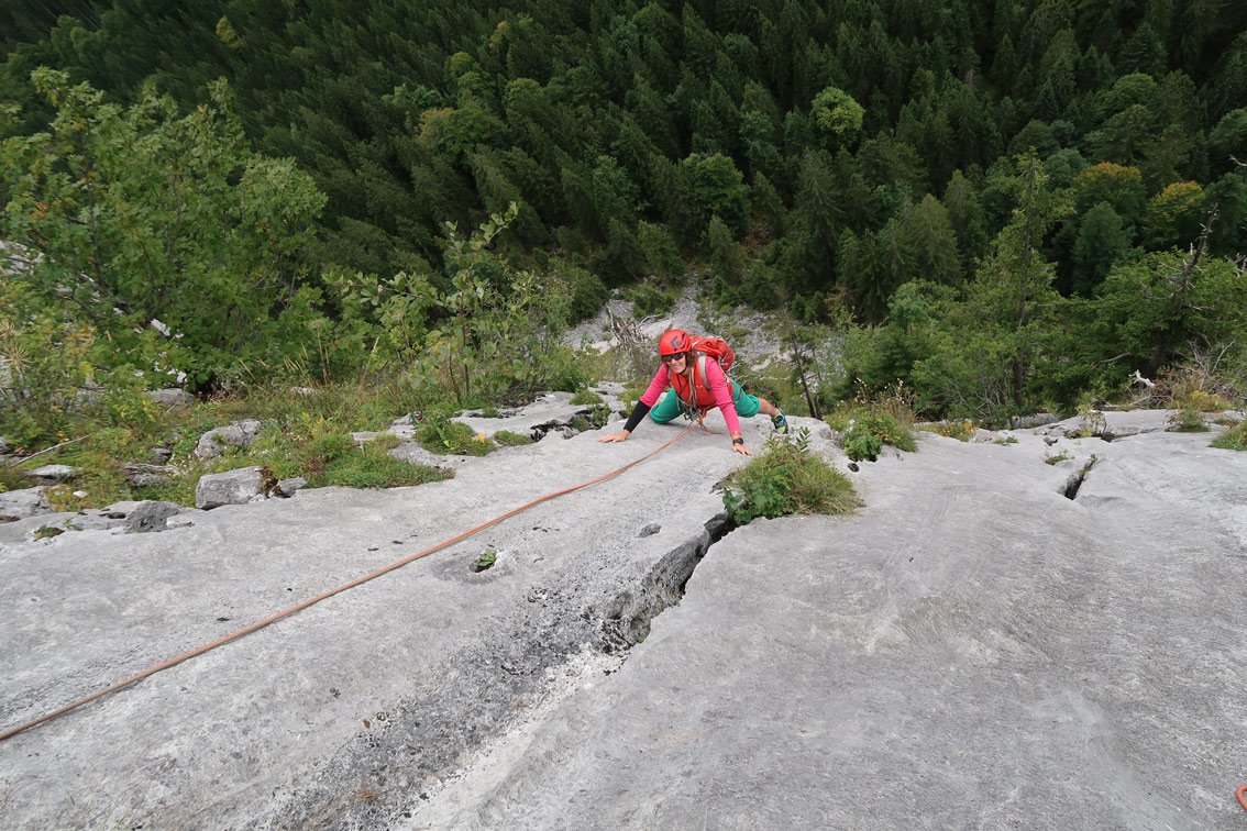 Die Route ist sehr gut abgesichert, aber kein Superplaisir. In den ganz leichten, grasigen Abschnitten weite Abstände.
