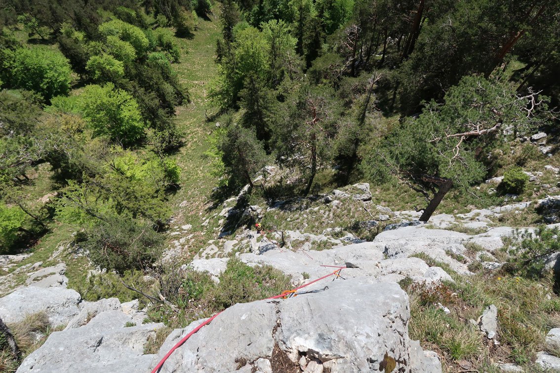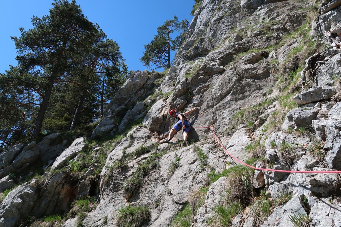 Anm.: Die Route wurde vom Erstbegeher sehr gut saniert, die alten Self-Made-Bohrhaken und Normalhaken wurde gegen solide Bohrhaken getauscht.