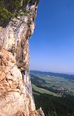 Sehr netter 3er Klassiker mit einer 4- Stelle beim Einstieg (Foto), der seltener begangen wird, dadurch besteht teilweise große Steinschlaggefahr. Der Gaiserkamin befindet sich gleich bei der ersten Seillänge und stellt die Schlüsselstelle der Tour dar, ist aber durch 5 teilweise alte NH gut abgesichert (Foto). Bei der zweiten Seillänge sollte man unbedingt nach dem ersten Klebebohrhaken (Einstieg Traummosaik (5)) nach links auf den Grat ausweichen, da sonst extreme Steinschlaggefahr für die Nachkommenden besteht. Die roten Punkte am Grat sind sehr schlecht erkennbar. Danach wird wieder über die Rinne leicht absteigend gequert und über eine 2er Stelle erreicht man den Höhepunkt des Steiges, die Gaiserplatte (Foto). Auf dieser gibt es neue Klebebohrhaken, man kann aber auch beim rechten Riss die Haken der abzweigenden Steige verwenden. Ein ganz feiner Kamin mit dem Steigbuch folgt, der aber auch links umgangen werden kann (Foto). Nach dem Gehgelände unter dem Bizepswandl und einigen leichten Stellen folgt man noch den wunderbaren Blöcken zum Ausstieg.