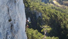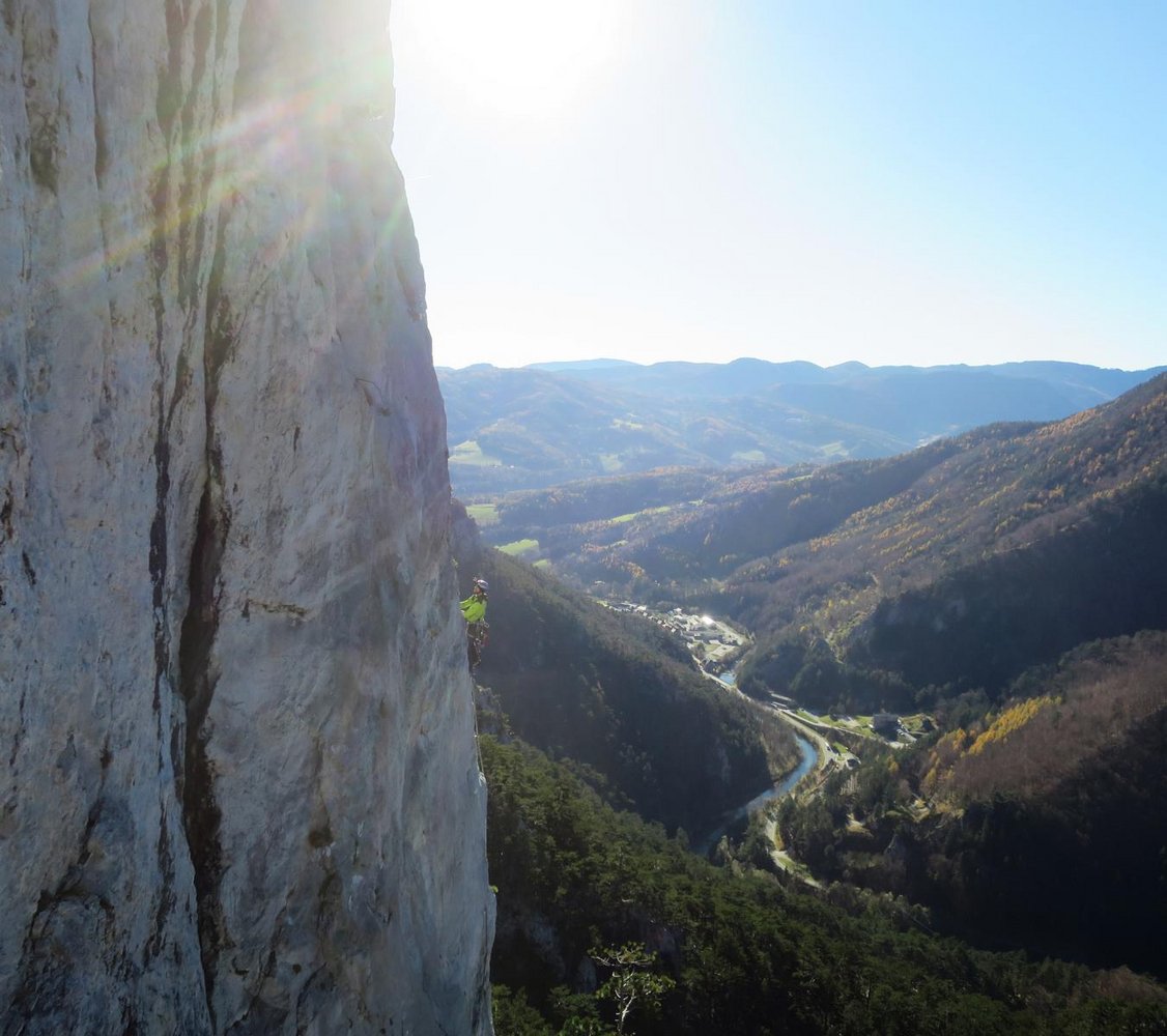 Abseilen über die Route (siehe Topo!). Dann Schnellabstieg vom Großofen über die Geröllhalde unter der Himmelsleiter, welche direkt zur Schwarza führt. Einfach toll und schnell (10 min.)