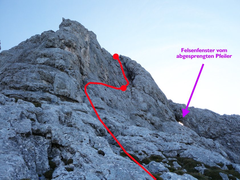 Achtung: Bei Nässe oder Schneelage ist das Schrofen-/Grasgelände (Vorgifpel zum Hauptgipfel bzw. Weiterweg zum Mittenwalder Höhenweg) gefährlich bzw. bei eingeschränkter Sicht ist die Wegfindung dort nicht ganz einfach!