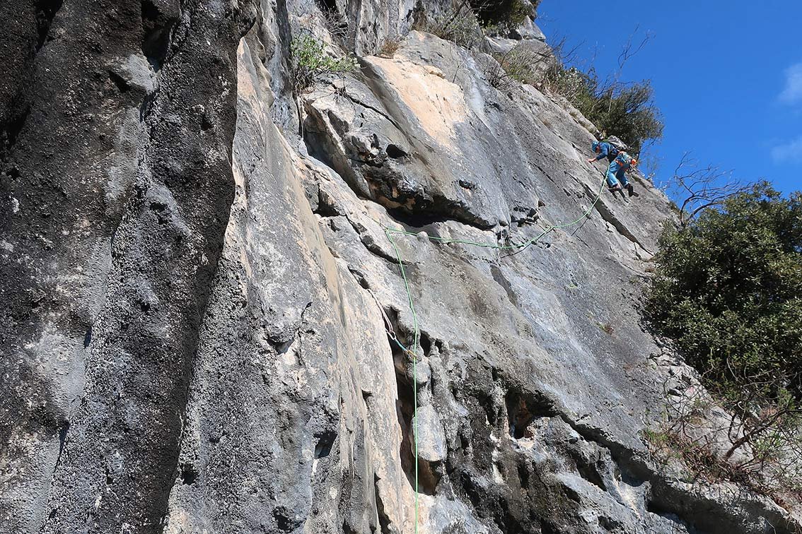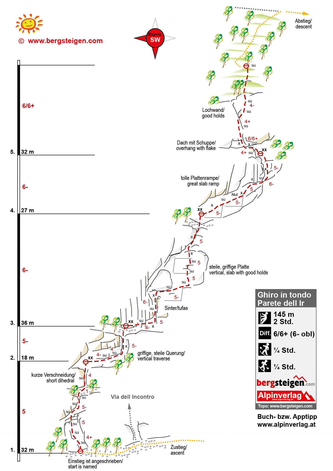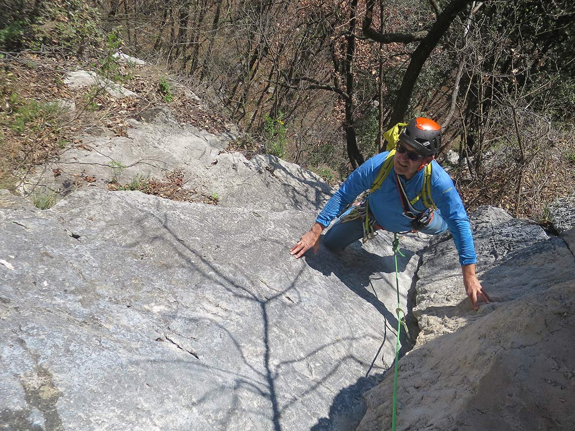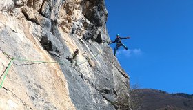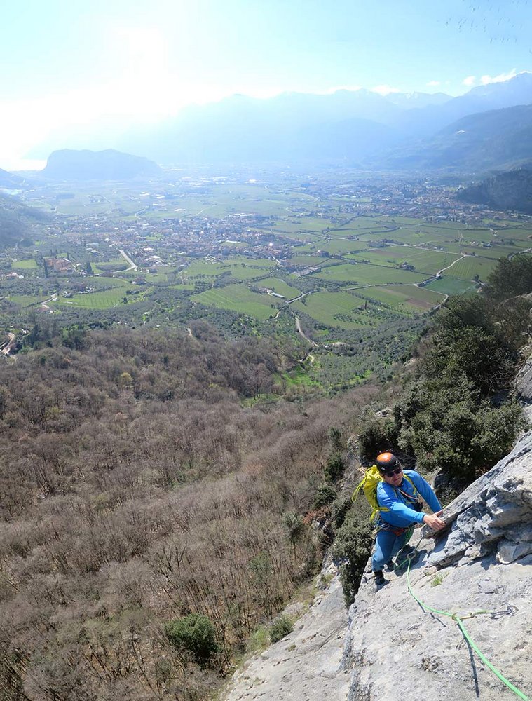 Die Route Ghiro in Tondo an der Parete dell Ir ist ein kleines Meisterwerk an gelungener Routenführung! Man klettert meist etwas querend an tollen Rampen und Verschneidungen aufwärts, das kleine Finale ist dann ein Mini-Überhang in der letzten Seillänge. Man bewegt sich immer an hervorragendem, griffigem Fels, auch der Abschlussüberhang ist mit großen Griffen nicht wirklich ein Problem. Die Absicherung ist ausreichend gut und man hat immer einen tollen Blick bis zum Gardasee - was will man noch mehr - die Ghiro in Tondo ist eventuell die beste Route an der unteren Parete Ir Felswand!