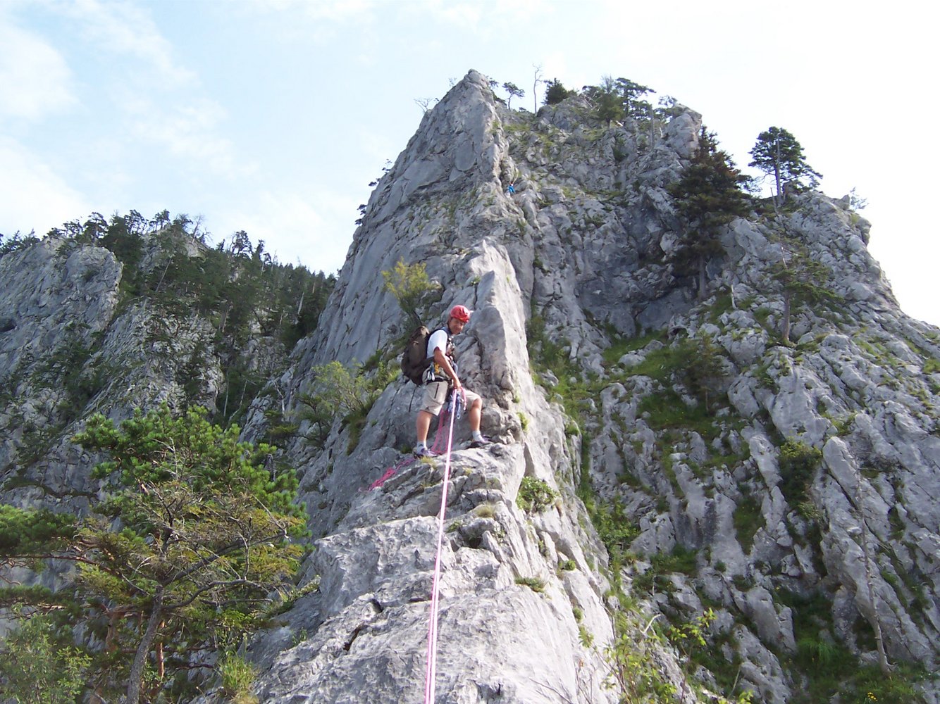 Der Aufstieg ist nicht zu unterschätzen, vor allem im Sommer kann es auf dem SW-Grat sehr heiß werden. Die Standplätze sind gebohrt, dazwischen stecken nur wenig Bohrhaken. Tipp: Man kommt sehr zeitig in der Früh, bekommt einen freien Parkplatz und kann nach dem Klettern noch baden gehen. Der Aufstieg (Naturfreundesteig) zum Traunsteinhaus dauert ab dem Ausstieg ca. 1-1½ Std..
