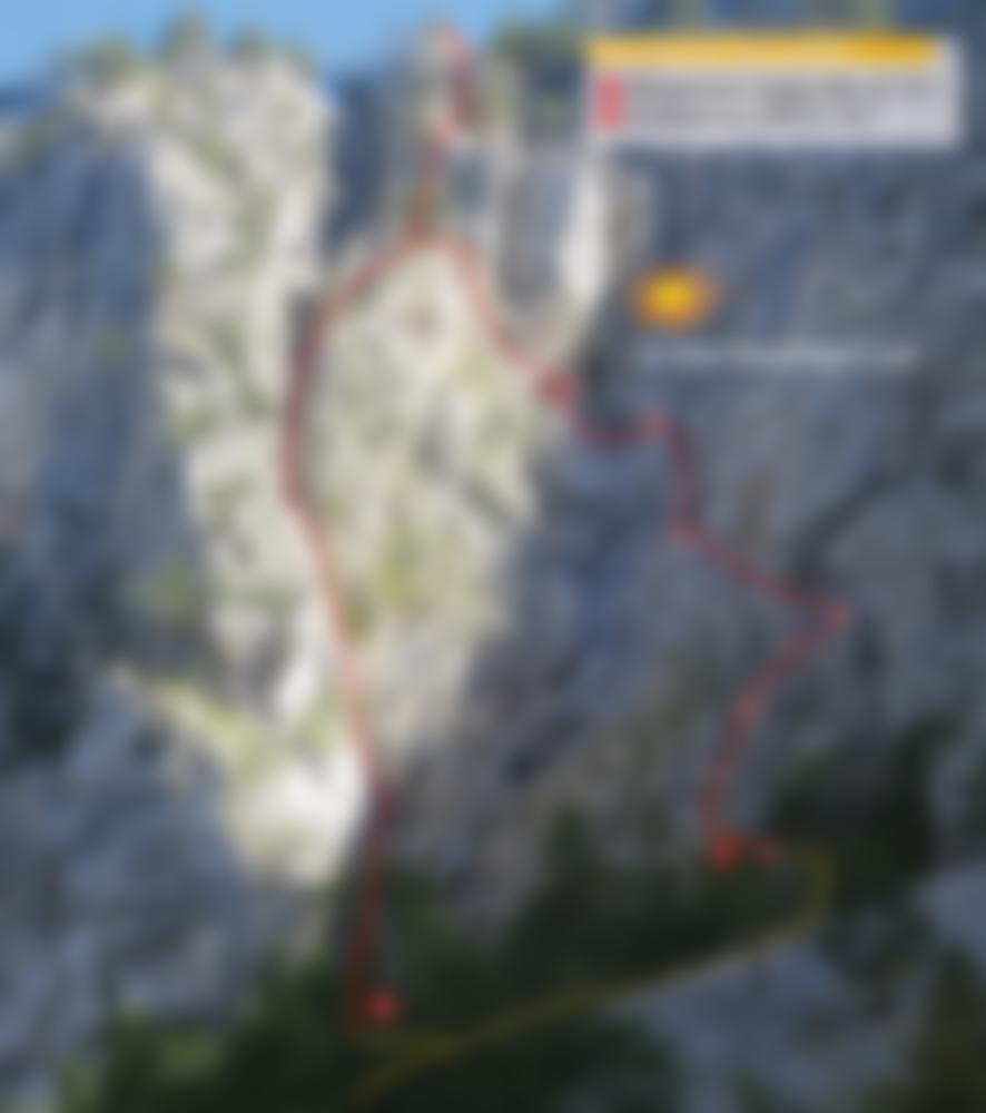 Tolle, sehr ausgesetzte Kaminkletterei in der markanten Kaminreihe links vom Akademikersteig. Luftige Kletterei, bei der man meist spreizend durch Kamine aufsteigt, oben trifft man dann auf den Akademikersteig.