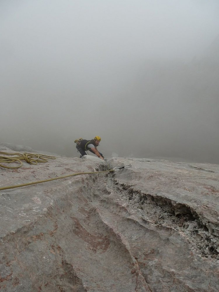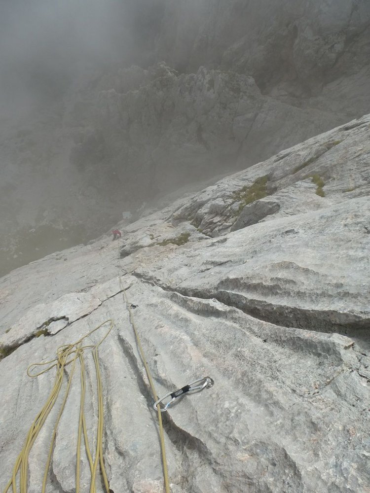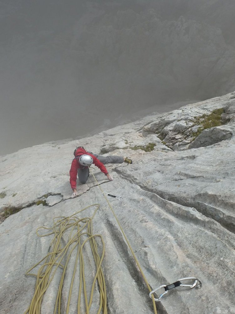 Zur Trogkofel Südwand braucht man eigentlich nicht viel sagen. Alle Touren sind außerordentlich schön, haben festen, teils wasserzerfressenen Kalk und sind sehr gut abgesichert. Die Routen sind sich vom Charakter her sehr ähnlich, sie besitzen oftmals technische Passagen und fordern eher die Beine als die Arme. 'Gretel' ist von den Schwierigkeiten recht homogen und bietet mit den Wasserrillen-Passagen fantastische Kletterei. Von Vielen wird sie deshalb als die schönste Tour an der Südwand gehandelt. An der Trogkofel Südwand kann man aufgrund ihrer 'Süd'-Exposition vom frühen Frühjahr bis in den späten Herbst klettern.