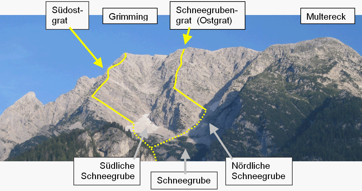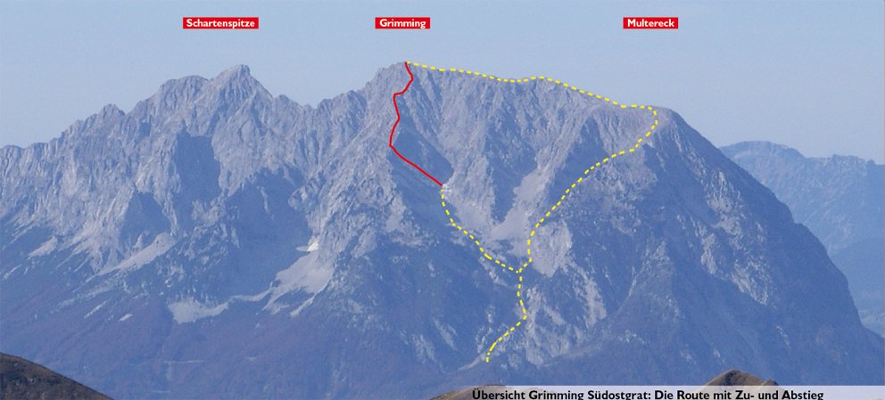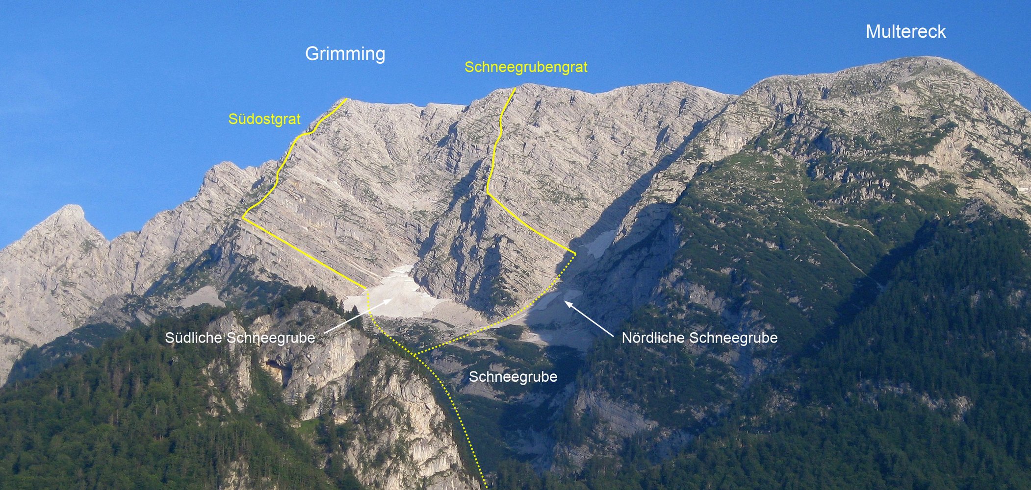 Der Grimming, der höchste freistehende Berg der Alpen ist ein beliebtes Ziel von Wanderern und Freunde leichter Kletterrouten. Der in Vergessenheit geratene Schneegrubengrat ist der „Zwillingsbruder“ des viel begangenen und markierten Südostgrates und diesem sehr ähnlich, jedoch etwas anspruchsvoller (keine Spuren, keine Markierung, keine Haken). Wer sich seilfrei am Südostgrat wohl fühlt und Lust auf mehr hat, ist hier am richtigen Platz.