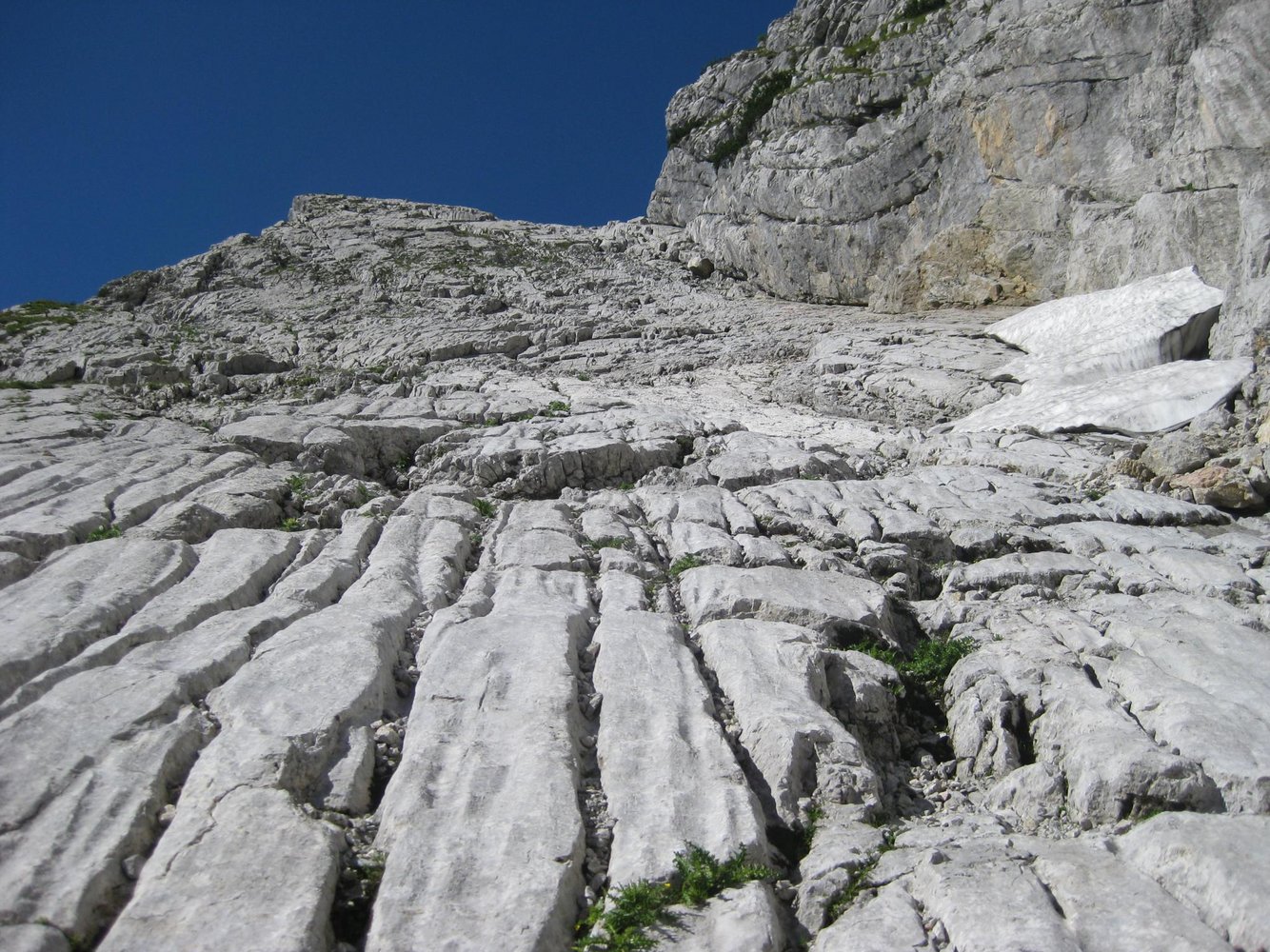 Es stecken keine Haken, die Tour wird von den meisten Begehern ohne Seil geklettert.
