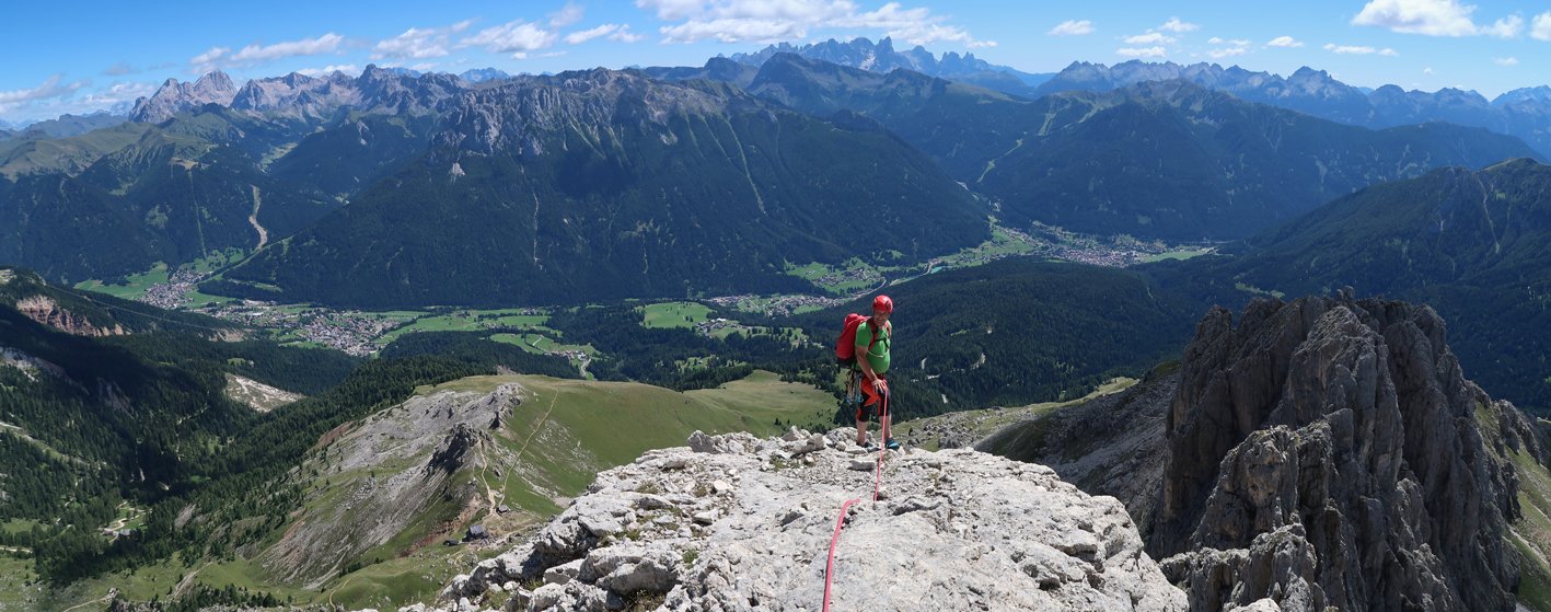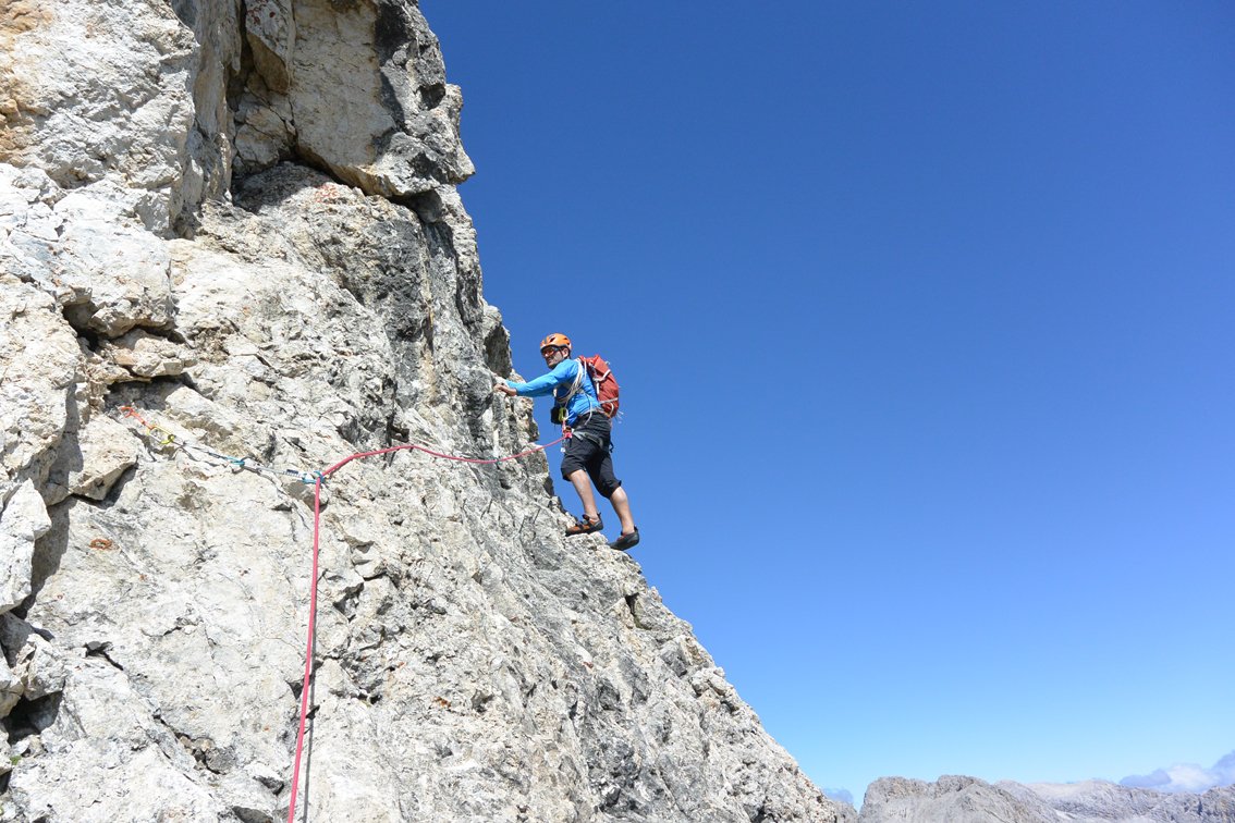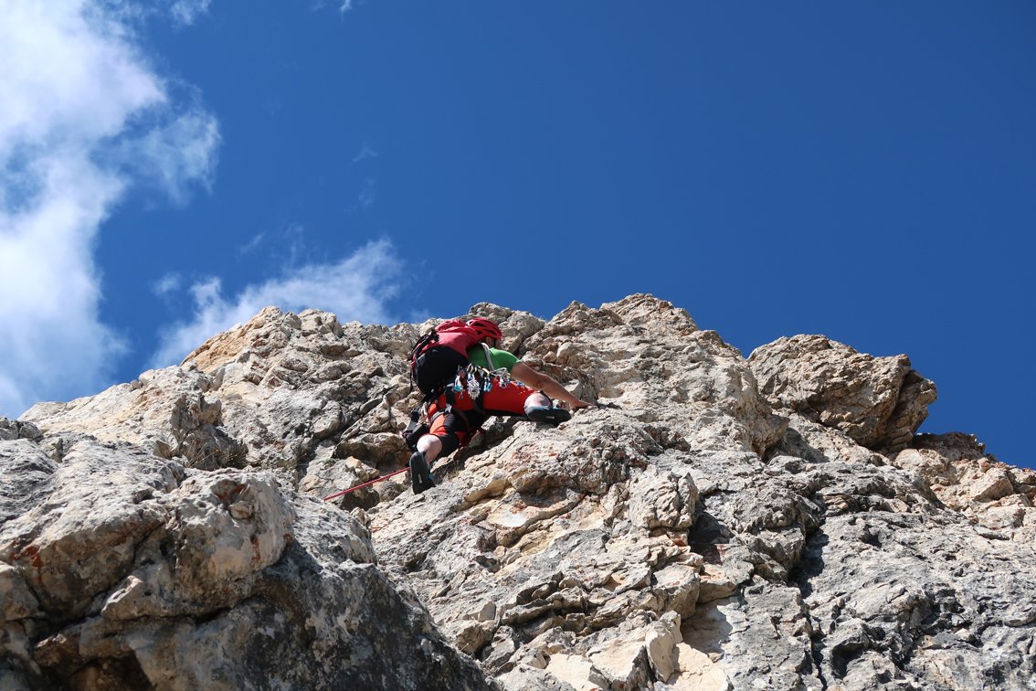 Ein oft begangener Dolomitenklassiker, der schöne, steile und griffige Genusskletterei bietet. Der Anstieg ist sehr beliebt und wird auch gerne von Bergführern mit Gästen gemacht. Man kann auf div. Varianten hinauf auf die Teufelswandklettern - schönes alpines Klettererlebnis direkt neben der Rotwand.