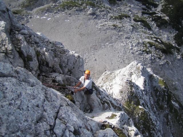 7. Seillänge, Auf dem Grasband. Unten die Welser Hütte., Foto: Andreas Jentzsch