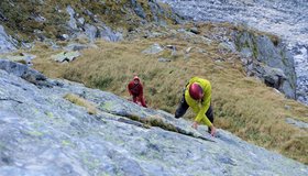 Wandletterei an kompakten Platten. Bis Mittag kühles N-Wand Ambiente. Ab frühen Nachmittag kommt die Sonne in die Wand und beschert warme Hände. Beide Routen sind komplett mit BH ausgerüstet, an den Standplätzen 2 BH oder Ketten.