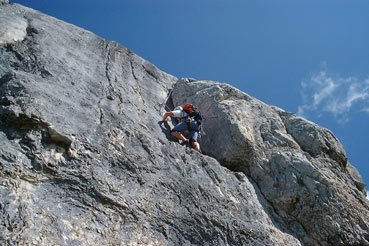 Am besten über den Ostrat (Wanderweg) absteigen.1, 5 h. Man kann im Notfall aber bei jedem Stand umdrehen (Ringe).