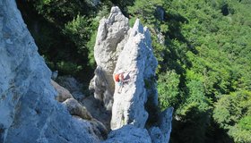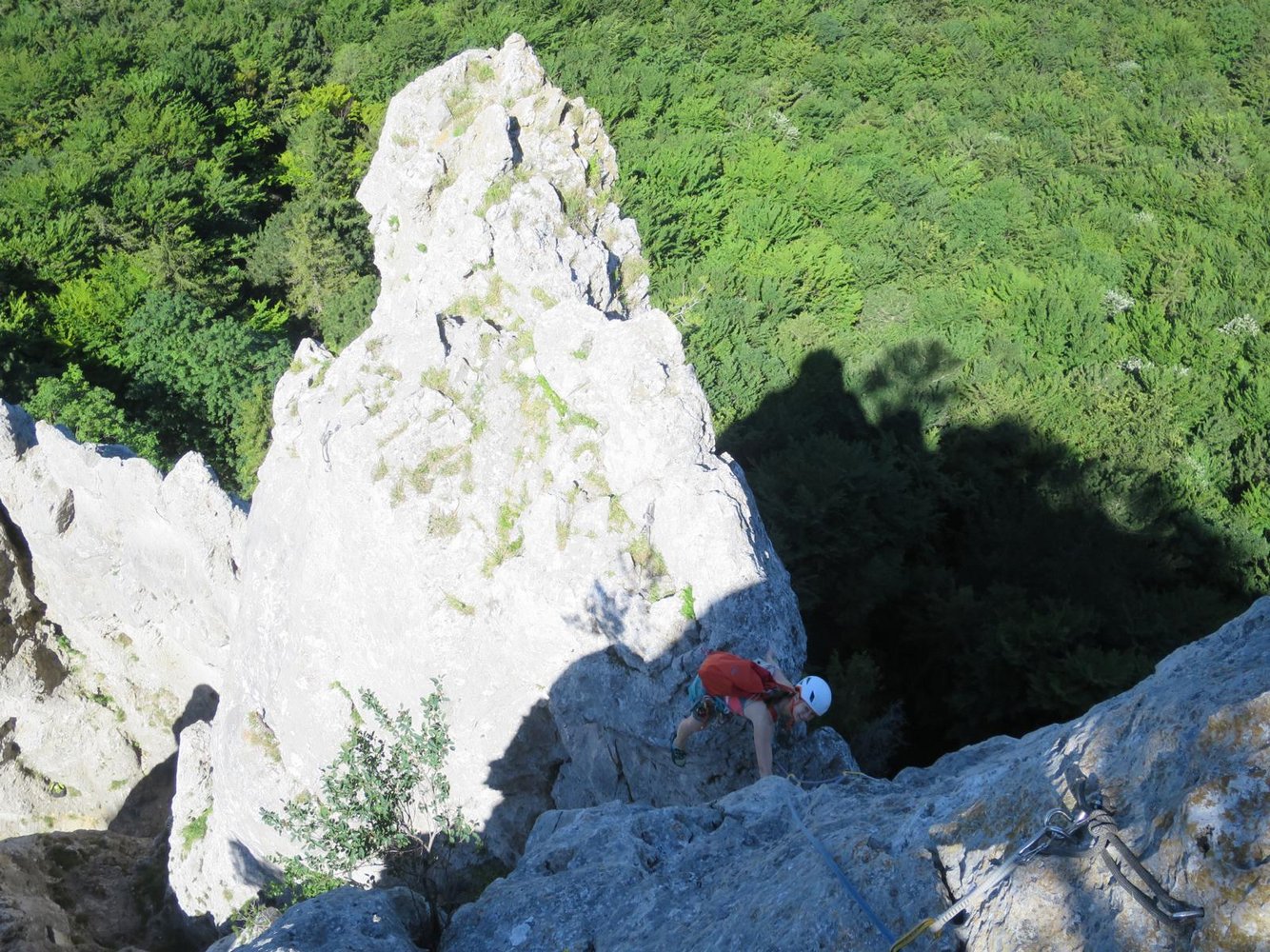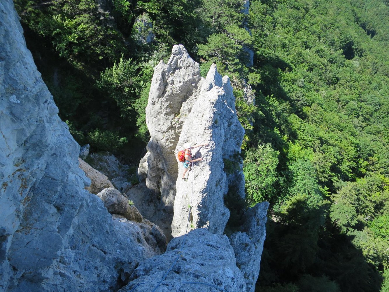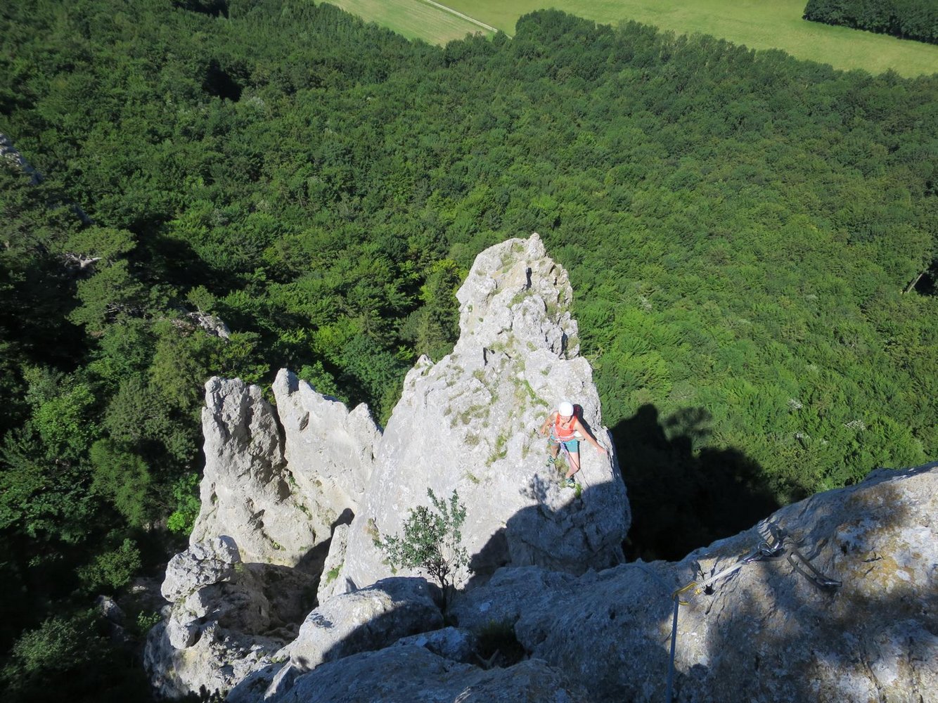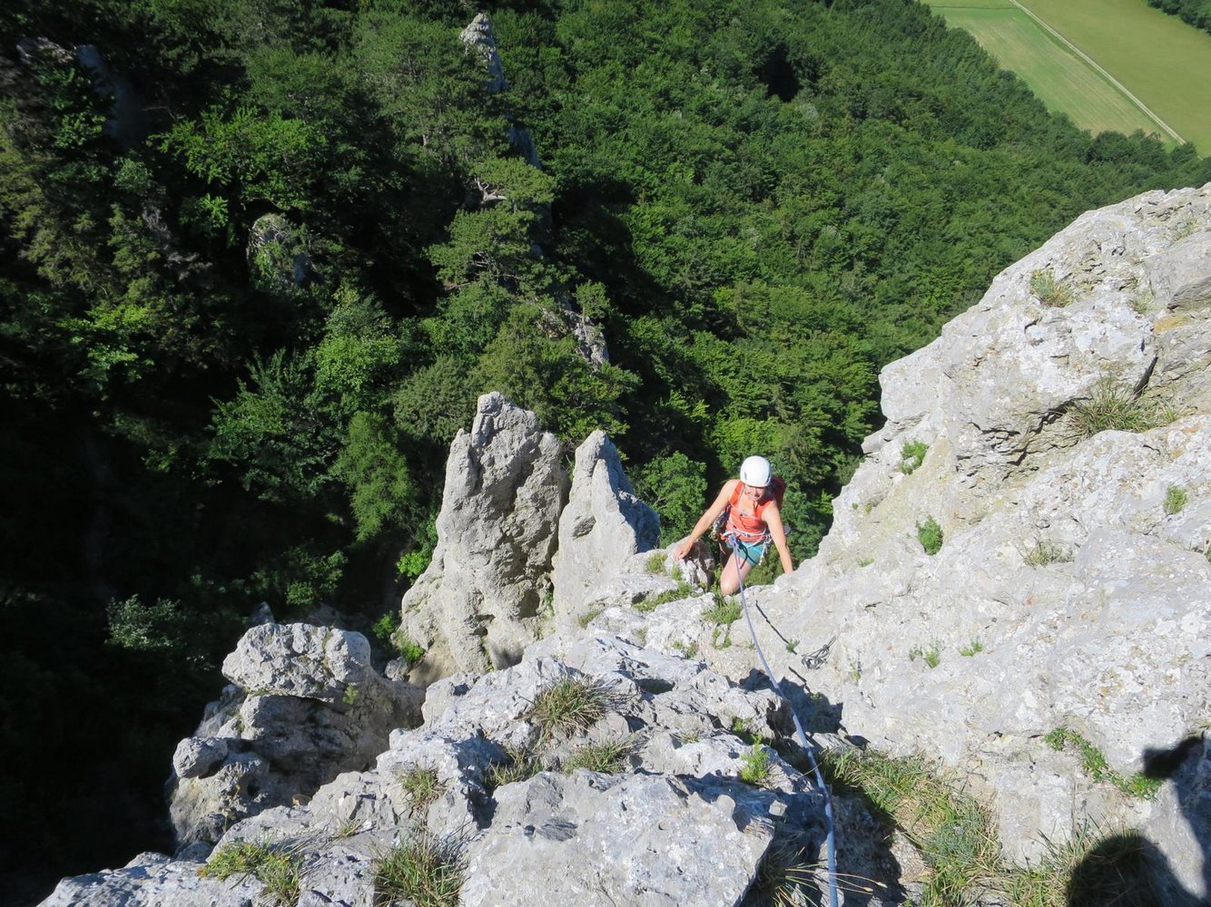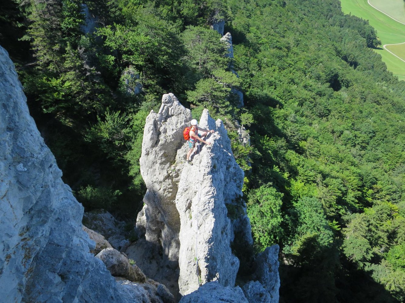 Absicherung sehr gut, lediglich auf der exponierte Nordseite des Hahnenkamms nur ein Bolt