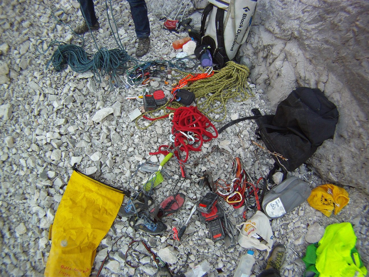 2 x 60 m Doppelseil, Helm, ein Satz Friends bis Größe 5, ein Satz Stopper und Bandschlingen,