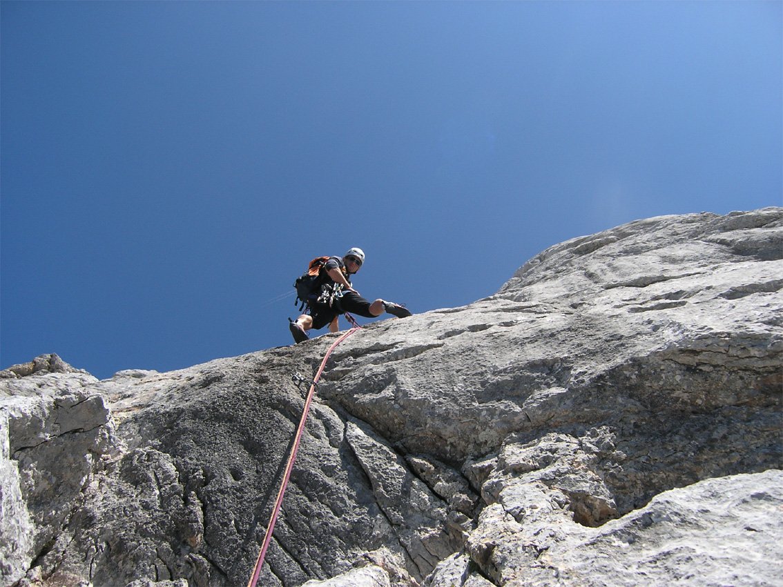Zustieg und Abstieg verlangen ein wenig alpines Gespür! Die Tour ist also nichts für 100%ige Hallenkletterer, die noch nie alpin Sportklettern waren.