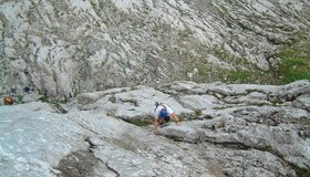 Gut mit Bohrhaken abgesichert - aber kein Plaisir, man muss schon etwas klettern.