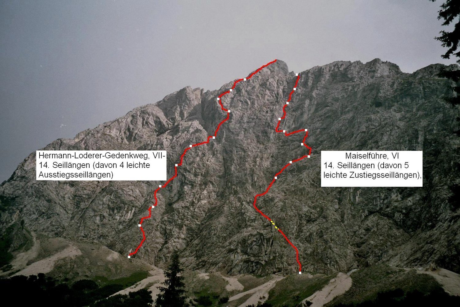Zu unrecht selten begangene schöne, aber durchaus auch ernste alpine Tour (laut Wandbuch 13. dokumentierte Begehungen, Stand August 2004). Alpine Freikletterei klassischer Prägung mit recht interessanten Abschnitten, in einsamer Wand. Wand wird wegen der meist ursprünglichen, alpinen Absicherung von Sportkletterer gemieden und erfährt auch sonst nur selten im Jahr einen Besuch. Neben der Maiselführe trotzdem eine der meistbesuchten Routen in der Nordwestwand. Meist fester Fels.