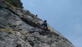 Schöne Route an rauem, griffigem und häufig auch sehr henkeligem Fels. Die Kletterei bietet relativ konstante Schwierigkeiten und stellenweise auch etwas Gras, was aber nicht stört. Die Tour wird nach oben hin immer schwieriger, glatter und auch anspruchsvoller. Die Crux wartet nach dem letzten Bolt. Für alle die sich oben schwer tun, einst war diese Stelle nur mit 5+ bewertet ;-)