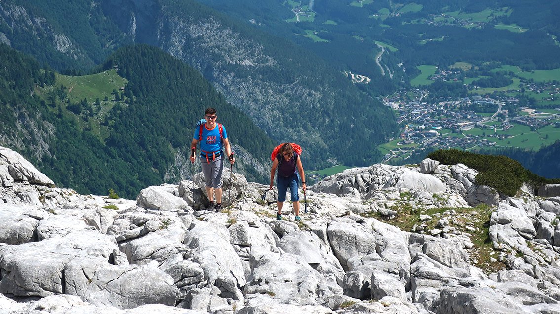 Vom Gipfel steigt man auf dem markierten, schwarzen Bergweg (Michael-Steiner-Weg) ab, unten trifft man auf den schon bekannten Zustiegsweg und auf diesem zurück ins Tal.
