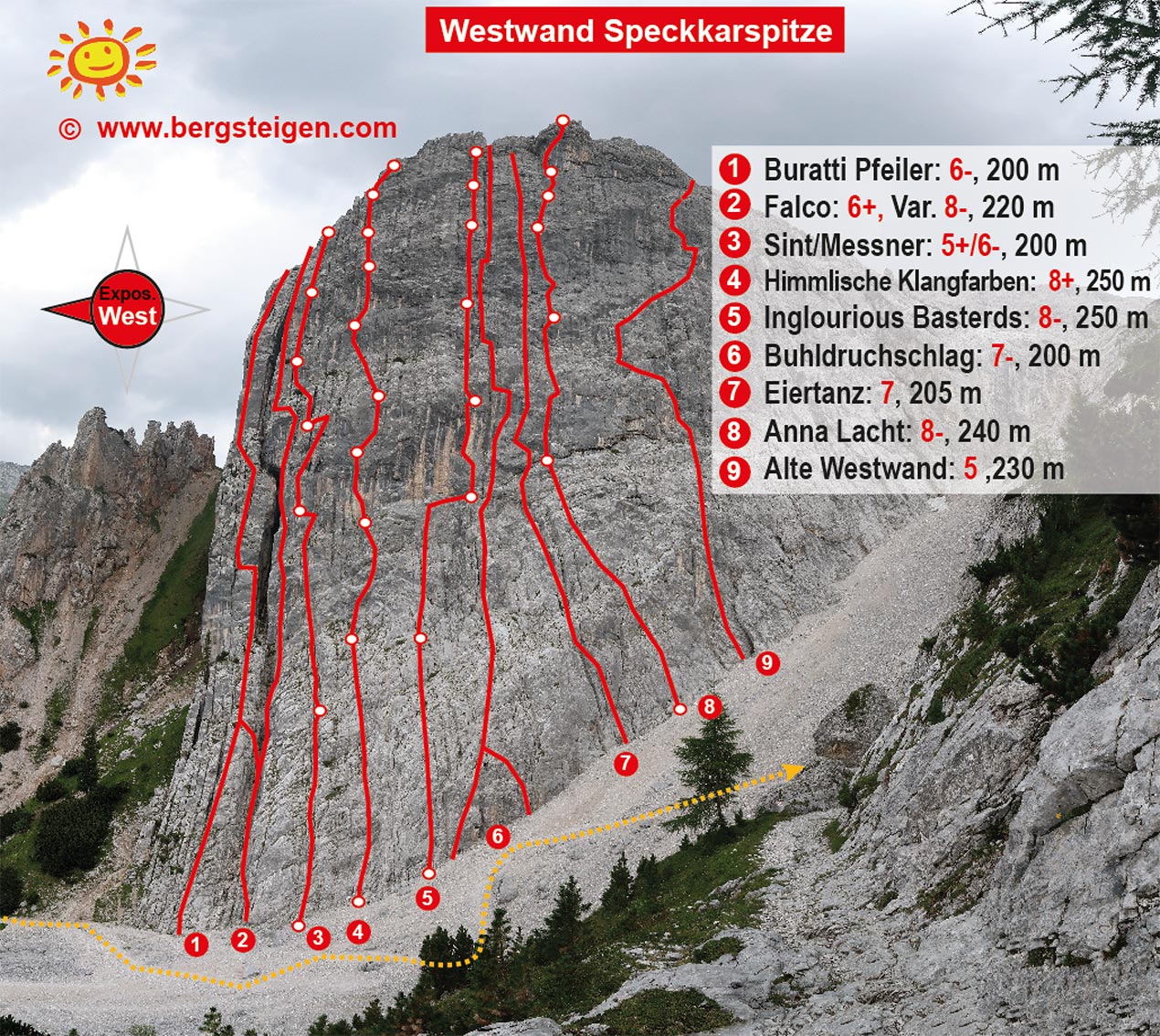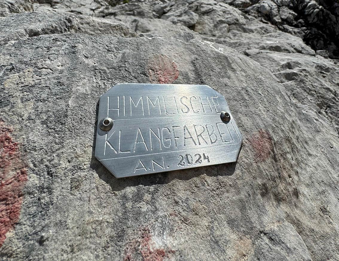 Vom Hallerangerhaus in Richtung Lafatscher Joch. Direkt am Westwand Eck angekommen, sieht man eine markante Gedenktafel. 15 m unterhalb ist der Einstieg - Tafel "Himmlische Klangfarben".