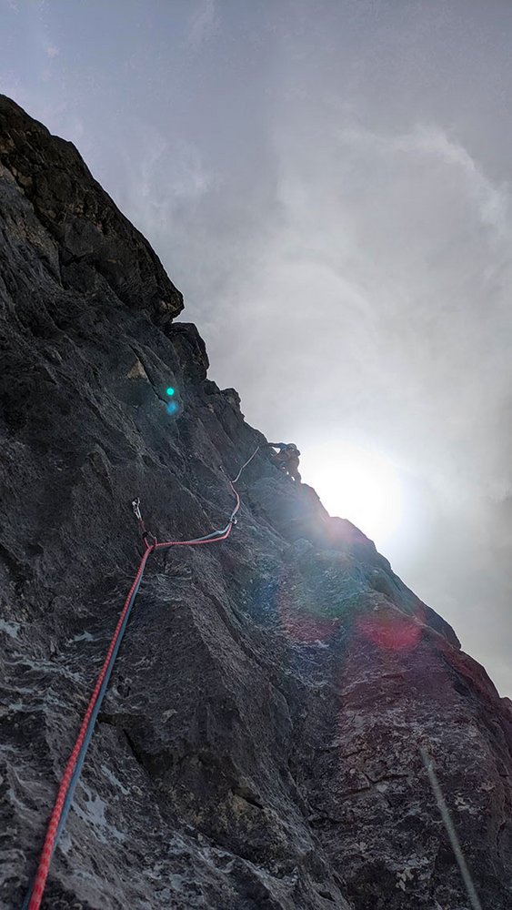 Nach reiflicher Überlegung entschloss sich der Erstbegeher die Tour allein von unten zu erschließen. Die Gewissheit, jede Entscheidung selbst zu treffen, macht so eine Solo-Erstbegehung zum nervlichen Balanceakt, auch wenn diese Wand nicht so hoch ist, war es doch eine Herausforderung. In fünf Tagesetappen konnte Andreas Nothdurfter die Wand durchsteigen - er bedankt sich beim Hüttenwirt Thomas für die moralische und kulinarische Unterstützung.