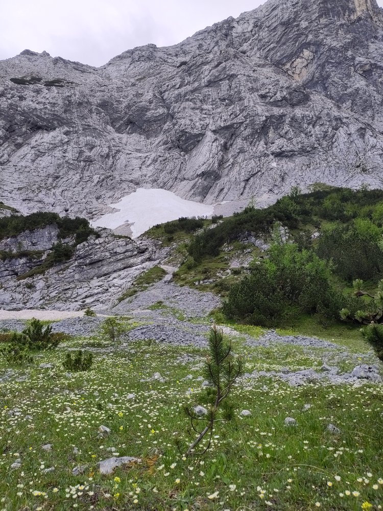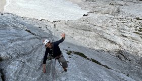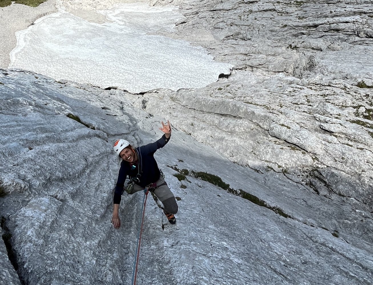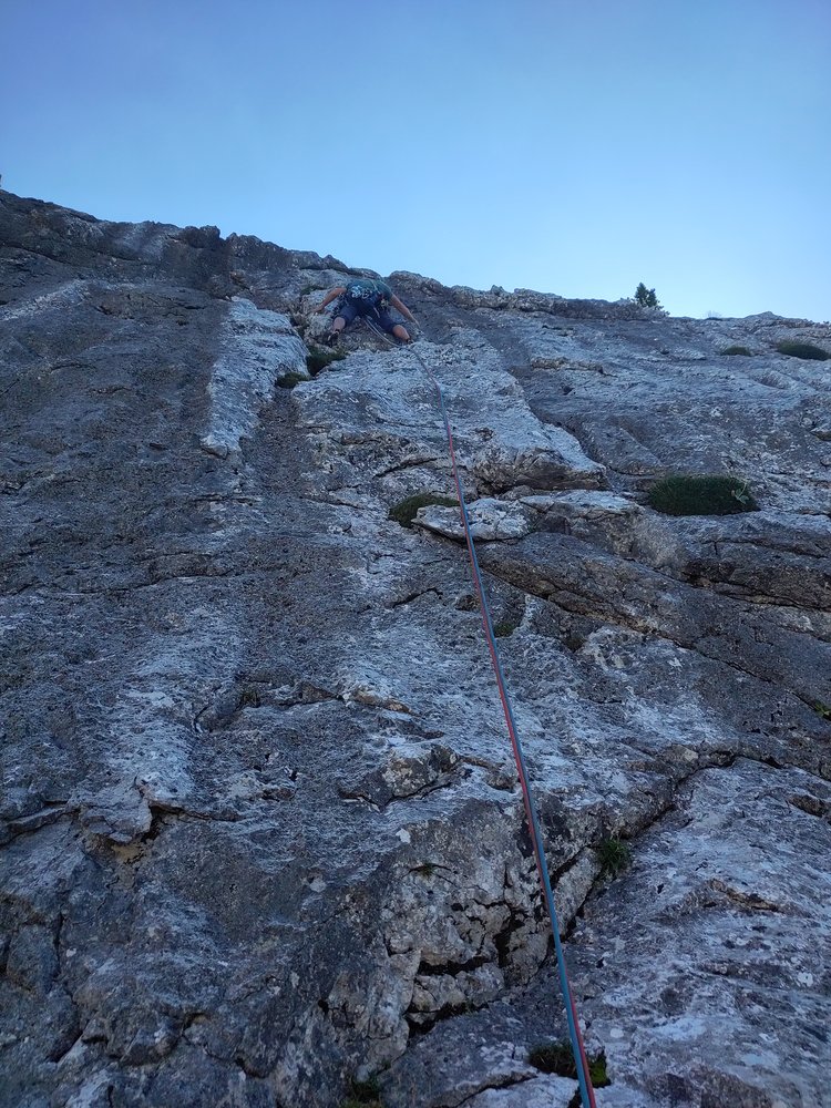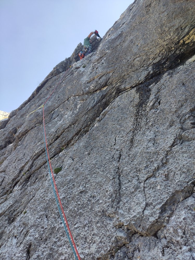Direkte, zentrale Linie durch den Nordwandsockel, die nahezu durchgehend entlang von fantastischen Wasserrillen variabler Steilheit verläuft. Herrlich fester, wasserzerfressener Wettersteinkalk, der das Emporsteigen zum puren Genuss macht.