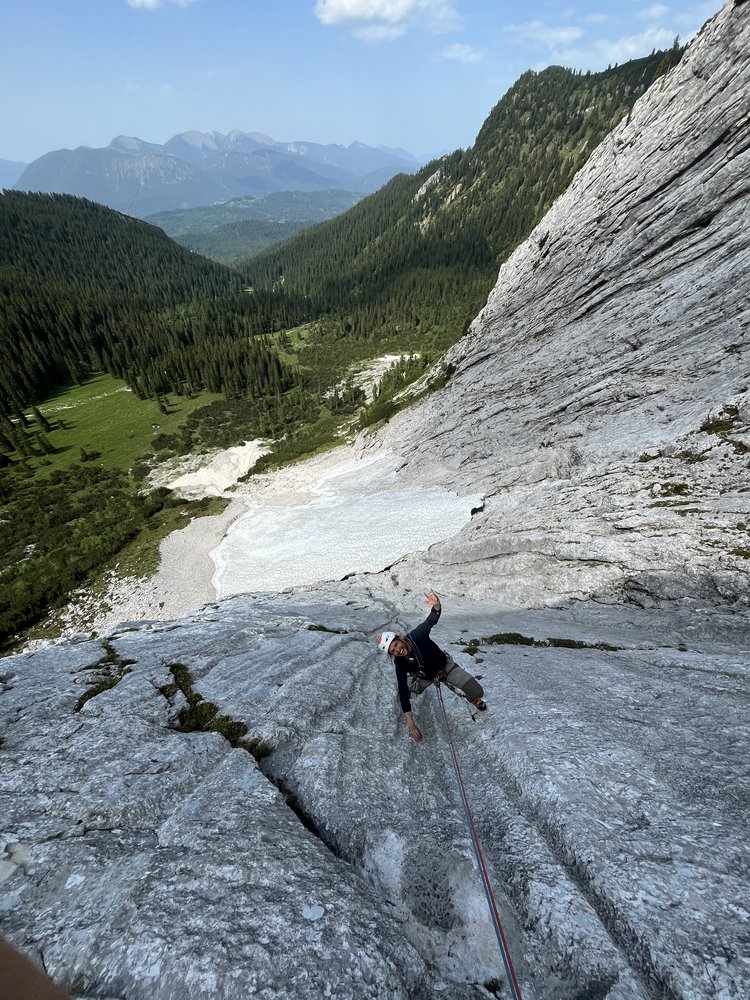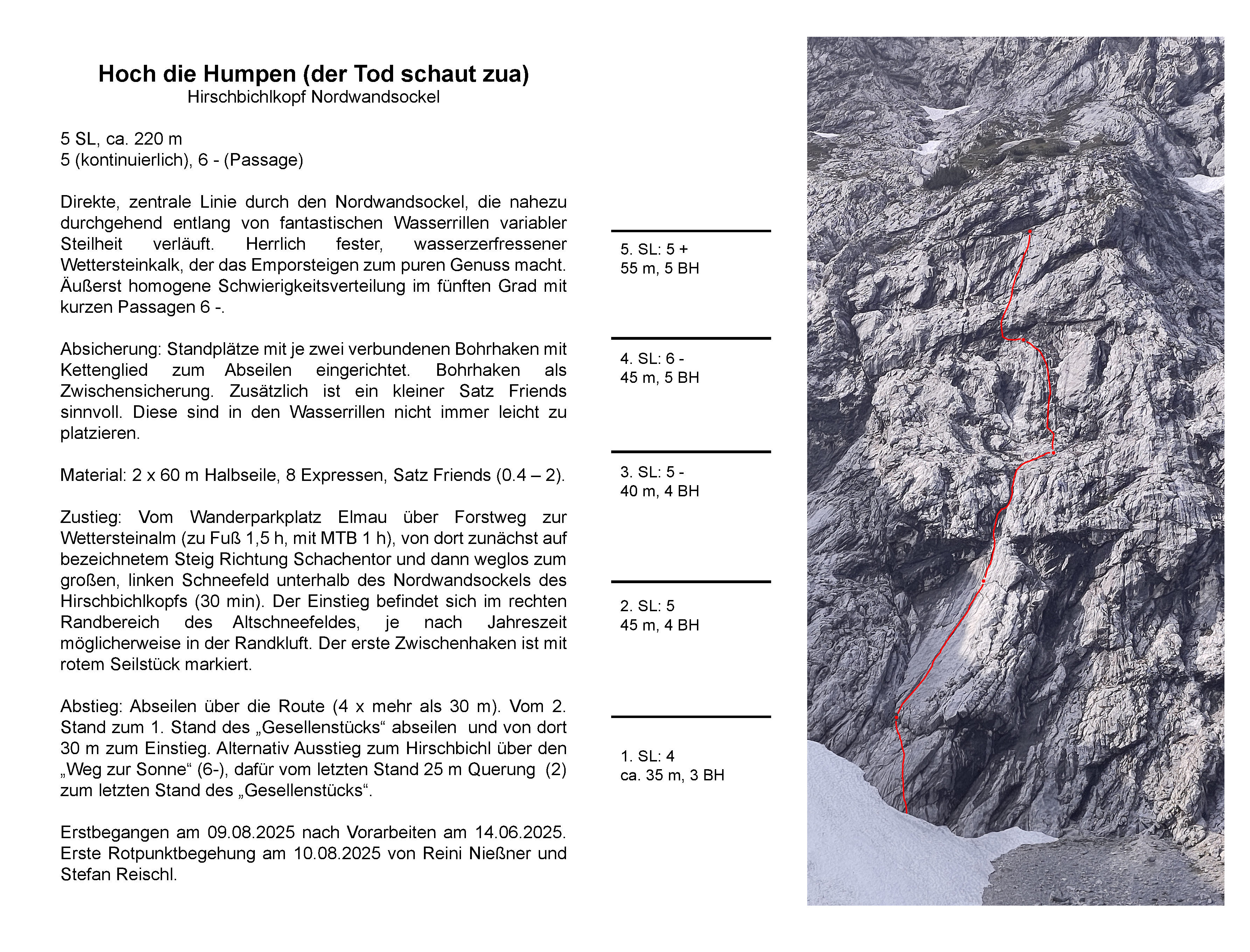 Erstbegangen am 09.08.2025 nach Vorarbeiten am 14.06.2025. Erste Rotpunktbegehung am 10.08.2025 von Reini Nießner und Stefan Reischl.