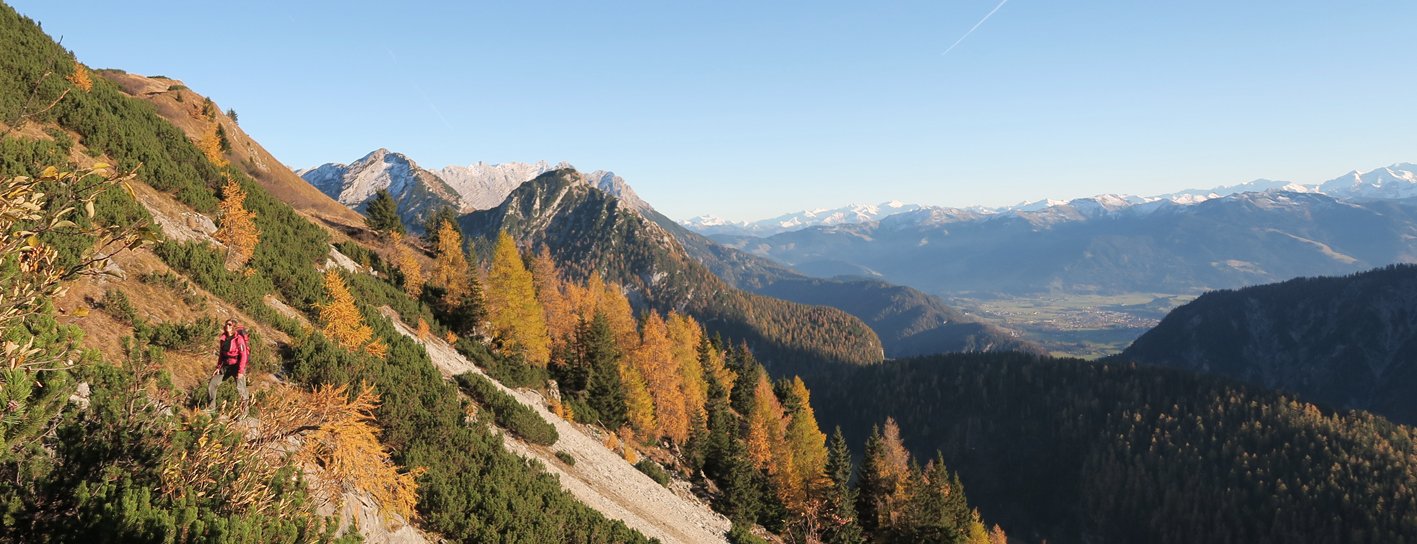 Auf dem markierten Normalweg durch Latschenfelder hinunter, weiter unten ist dieser bei einer Steilstufe mit Stahlseilen versichert. Man steigt wieder zur Abzweigung auf die Wiesenkupppe auf und geht auf dem Zustiegsweg zurück ins Tal.