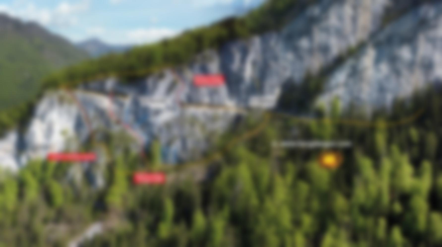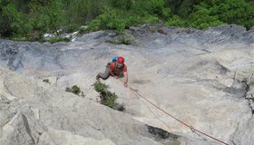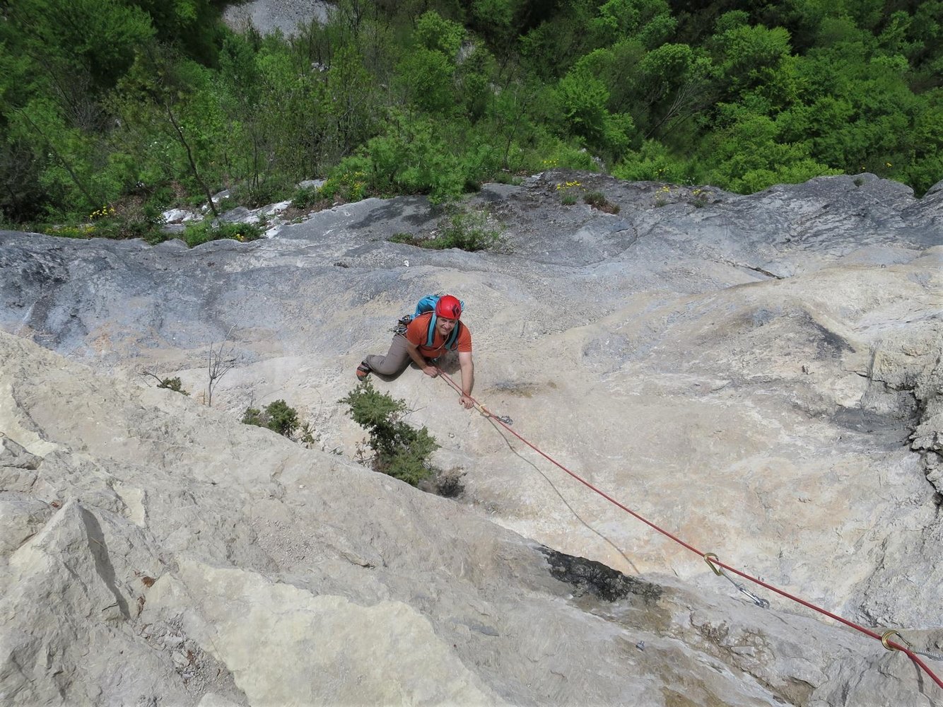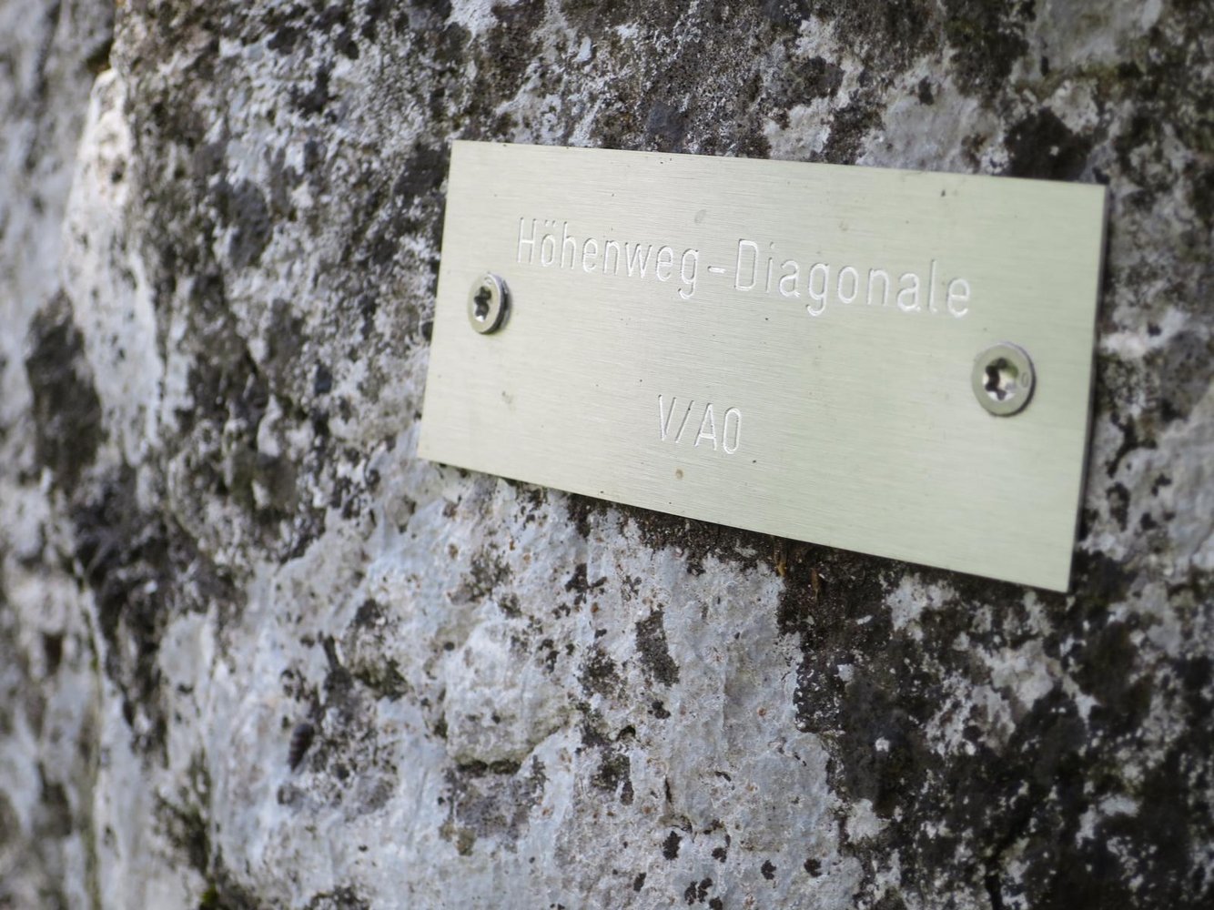 Nette Kurzroute unter dem Höhenweg. Die Route hat drei abwechslungsreiche Seillängen mit Rampen, Sintern und einer schönen Abschlussplatte.