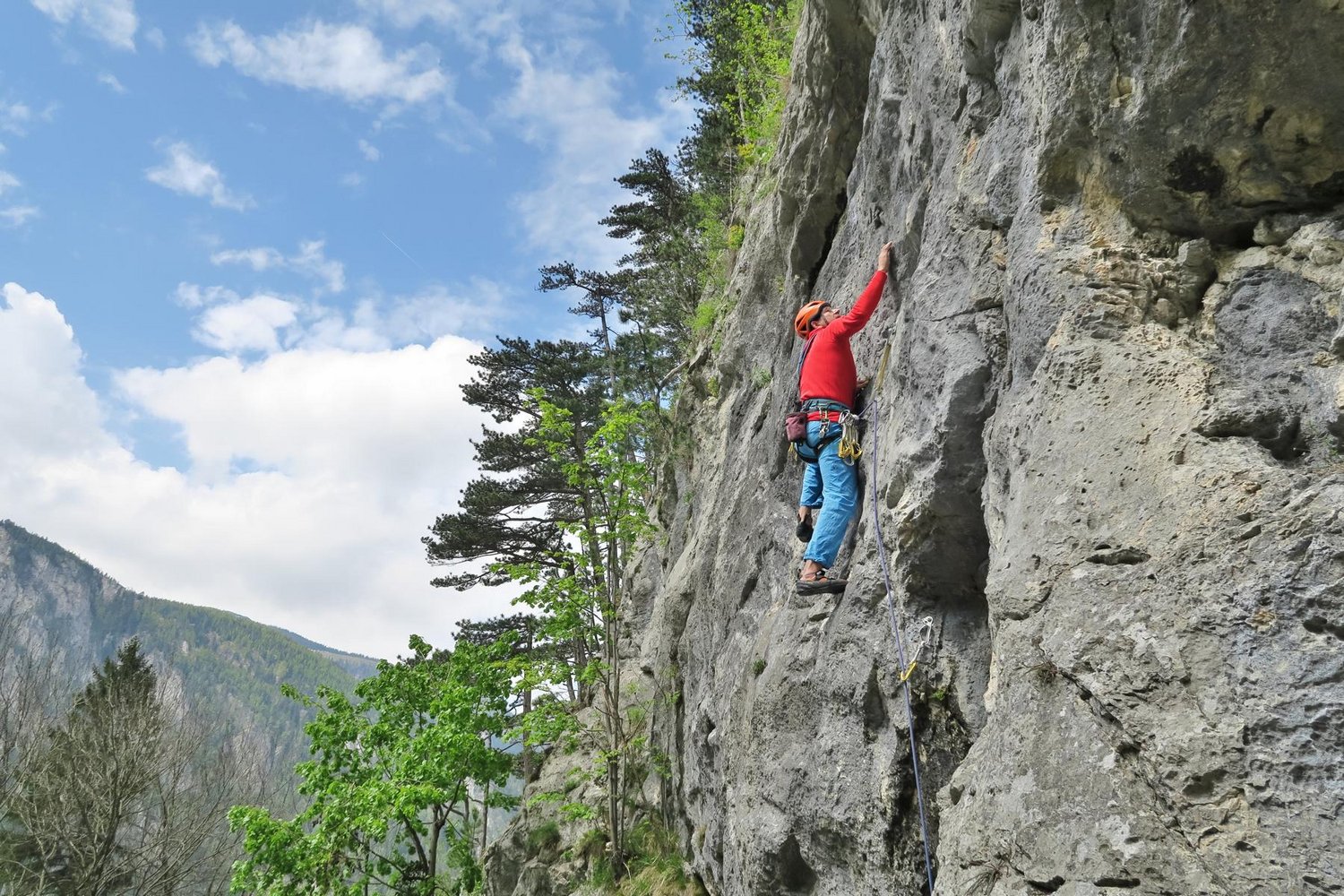 Interessante, aber recht kurze Neutour von Altmeister Otto Sanz. Der Fels ist in der ersten Seillänge genial, wird nach oben hin aber raxtypisch schlechter.