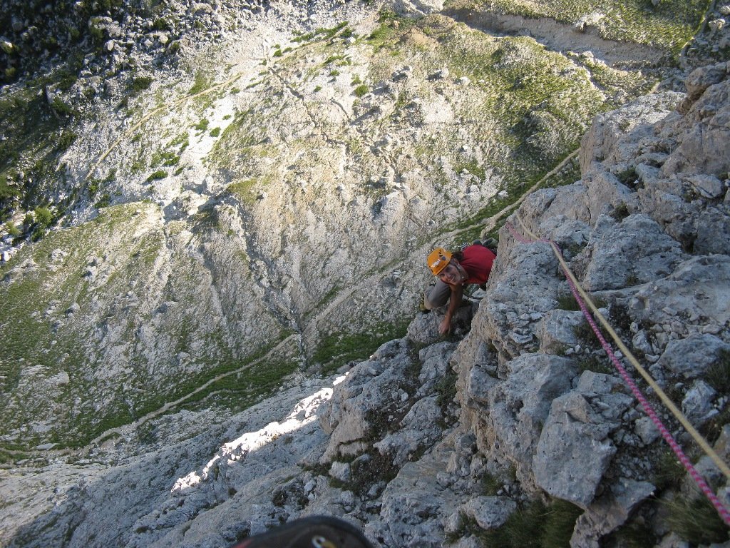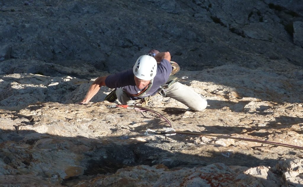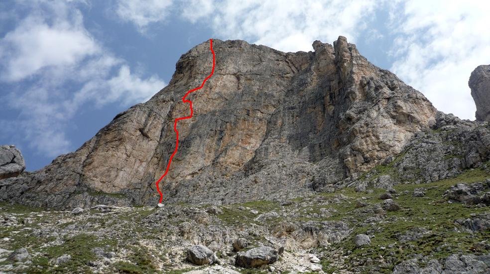 Tolle Leistenkletterei an überraschend gutem Fels. Es wird viel Ausdauer (in SL 1) und eine gute Tritttechnik verlangt. Die zwei Schlüssellängen sind anhaltend schwer, aber sehr gut gesichert. In den leichteren Passagen können die Haken auch mal 3-4m auseinander liegen, was in diesem griffigen Gestein aber nicht stört. Lediglich am Beginn der vorletzten Seillänge gibt es ein paar brüchige Stellen. Ansonsten ist der Fels sehr fest und wunderbar griffig. Eine tolle Tour, die man durch ihre südseitige Lage und den kurzen Zustieg lange im Jahr klettern kann. Es bietet sich auch an diese Tour nach einer Tour noch dran zu hängen (z.B. wenn man vom Ciavazes über das Gamsband von einer Tour absteigt).