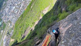 Il Cielo Sopra Bolzano - das ist steiles Plaisriklettern mitten im Trad-Klettergebiet der Seitner Wände. Routen mit Rissen gibt es an den Seitner Wänden viele, nur eine ist aber dermaßen gut abgesichert, dass sie eigentlich gar nicht zu den anderen Klemmkeilrouten passt. Gerade deshalb ist die Route vor den Vorhang zu stellen - klassisches Rissklettern über 8 Seillängen, das ganze perfekt abgesicherte, wo gibt es das schon!