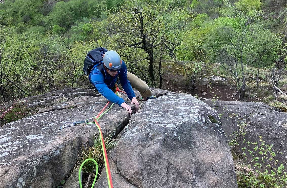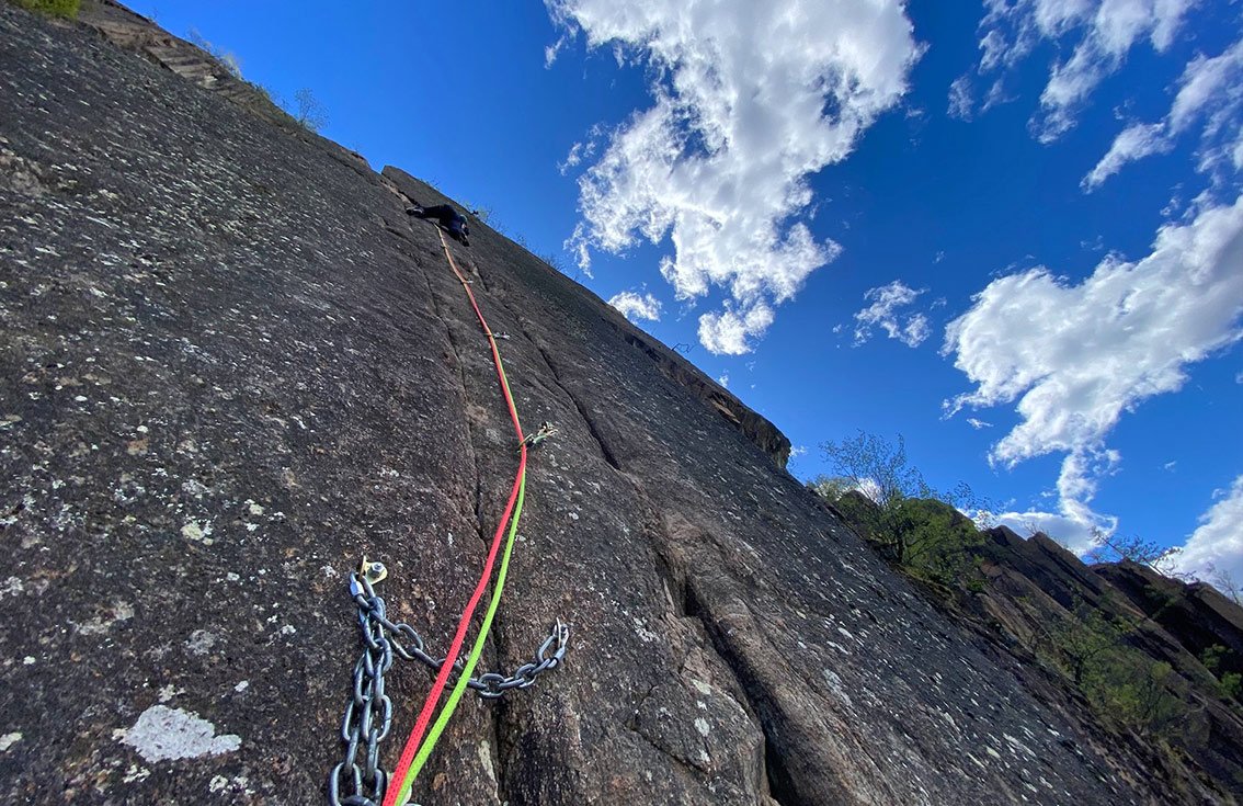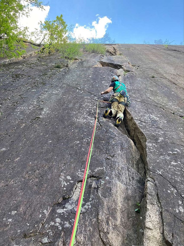 Eine Super-Plaisirroute in einem Trad-Klettergebiet ist eine willkommene Abwechslung, über die künstlichen Tritte an den Rissen kann man aber diskutieren.