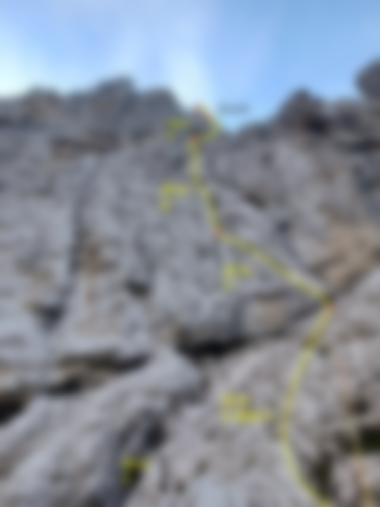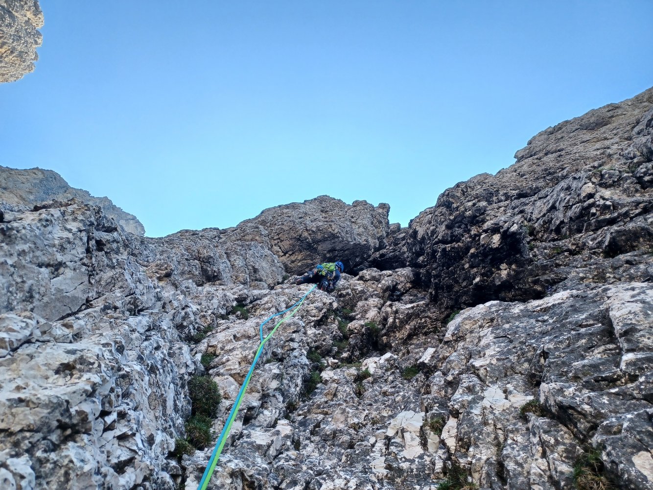 Achtung: aufgrund des supergriffigen Dolomits bleibt das Seil leicht hängen und ist das Abseilen zeitraubend - deshalb ausreichend Zeit dafür einplanen.